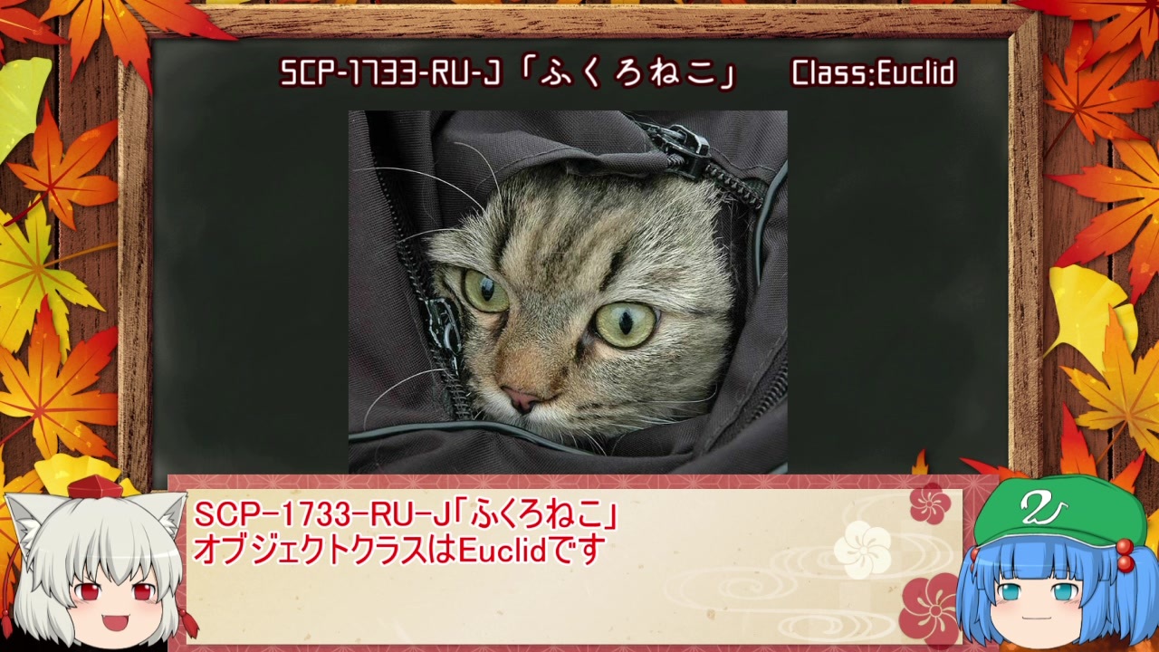 なんだかんだでこの動画も早10回です、皆様のおかげです<br>これからも地道に続けていくつもりですのでお付き合いいただけると嬉しいです<br><br>紹介させて頂いたSCP<br>SCP-1733-RU-J 執筆者:ACARU様 翻訳者:Hasuma_S様<br><a href="http://scp-jp.wikidot.com/scp-1733-ru-j" target="_blank" rel="noopener nofollow">http://scp-jp.wikidot.com/scp-1733-ru-j</a><br>SCP-2828-JP 執筆者:SuamaX様<br><a href="http://scp-jp.wikidot.com/scp-2828-jp" target="_blank" rel="noopener nofollow">http://scp-jp.wikidot.com/scp-2828-jp</a><br>CC BY-SA 3.0<br><br><a href="https://www.nicovideo.jp/watch/sm37786698" class="watch">sm37786698</a>←<a href="https://www.nicovideo.jp/mylist/69487465" target="_blank" rel="noopener">mylist/69487465</a>→<a href="https://www.nicovideo.jp/watch/sm38069639" class="watch">sm38069639</a><br><br>並行して上げてるシリーズ→<a href="https://www.nicovideo.jp/series/179591" target="_blank" rel="noopener">series/179591</a><br><br>著者様、使用コモンズ作者様いつもお世話になっております、ありがとうございます<br>また、視聴、コメント、マイリス、宣伝ありがとうございます<br>励みになっています<br><br>前回の動画を宣伝して頂いた皆様、重ねて感謝申し上げます<br>以下の方々に宣伝していただきました(2020/12/6現在)<br><br>てるてる様、sei様、おみ様、メイジャー様、左上哀歌様、SCP研究部@ニコニコ動画様、にけい様、大旦那様、mipie様、ぎがしー様、コカ様、クラウン様、osan様、Hezro様、阜邑(さとざと)様、ab様、カッパまき様、はにわ様、feder様、大工様<br><br>