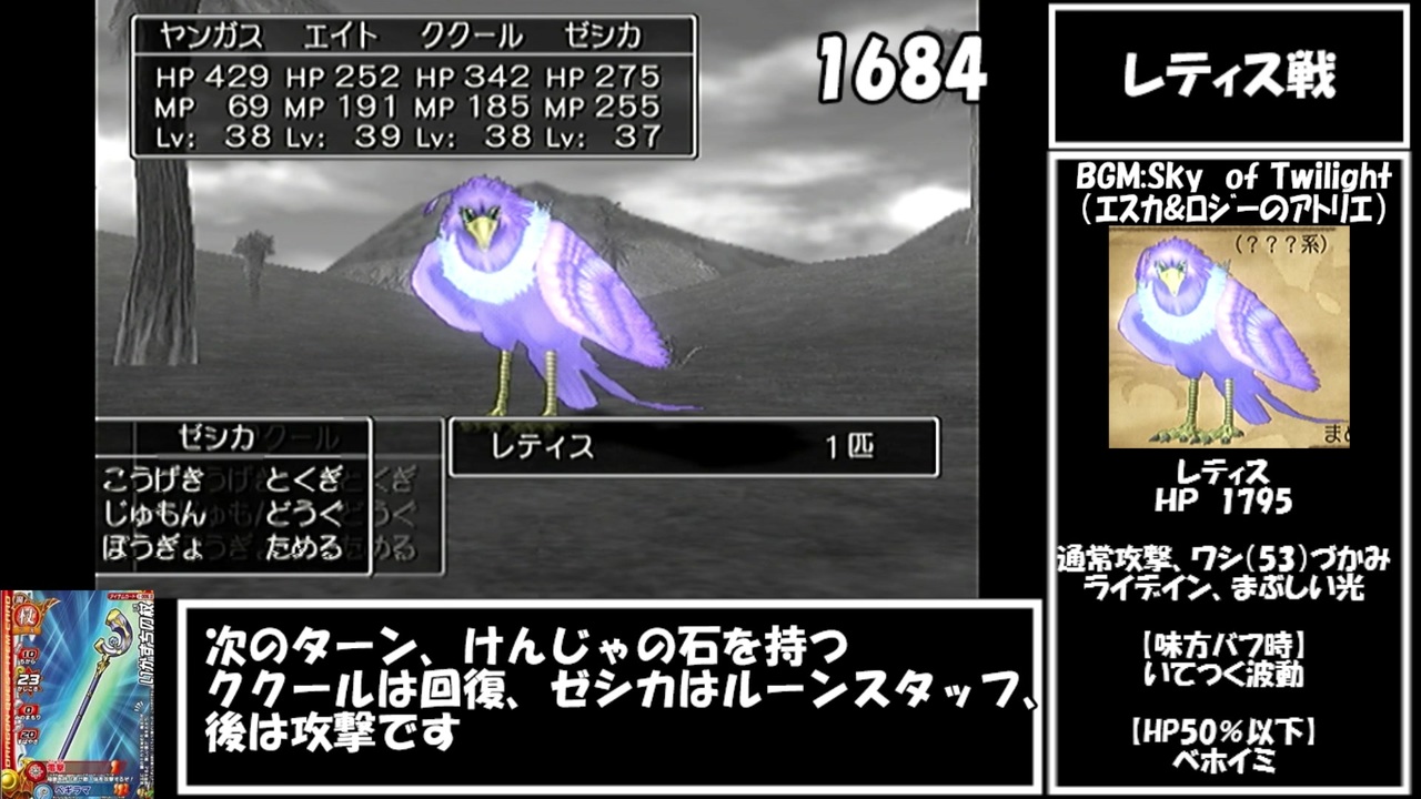 序盤のノルマを達成したので初投稿です。<br><br>レティシア~レティス戦まで<br><br><a href="https://www.nicovideo.jp/watch/sm37919018" class="watch">sm37919018</a>←前 <a href="https://www.nicovideo.jp/mylist/69843141" target="_blank" rel="noopener">mylist/69843141</a> 次→<a href="https://www.nicovideo.jp/watch/sm37948037" class="watch">sm37948037</a><br><br>【追記】<br>レティス戦のHP表記の計算が序盤からガバってるので、大体の目安として見てください。<br><br>生放送用を行うコミュ co4518186<br>Twitter:<a href="https://twitter.com/imomushidq8" target="_blank" rel="noopener nofollow">https://twitter.com/imomushidq8</a><br><br>【ルール】<br>①道具の使用のみで戦闘を行う。(ぼうぎょ・ためるは可能)<br>②移動中の呪文・特技の使用禁止。(すべて道具で行う)<br>③倒せないモンスターは、多少妥協する。<br>④なるべく失踪しない。<br><br>この動画で利用している株式会社スクウェア・エニックスを代表とする共同著作者が権利を所有する著作物及びスギヤマ工房有限会社が権利を所有する楽曲の転載・配布は禁止いたします。<br>© 2004 ARMOR PROJECT/BIRD STUDIO/LEVEL-5/SQUARE ENIX All Rights Reserved.<br>© SUGIYAMA KOBO<br>