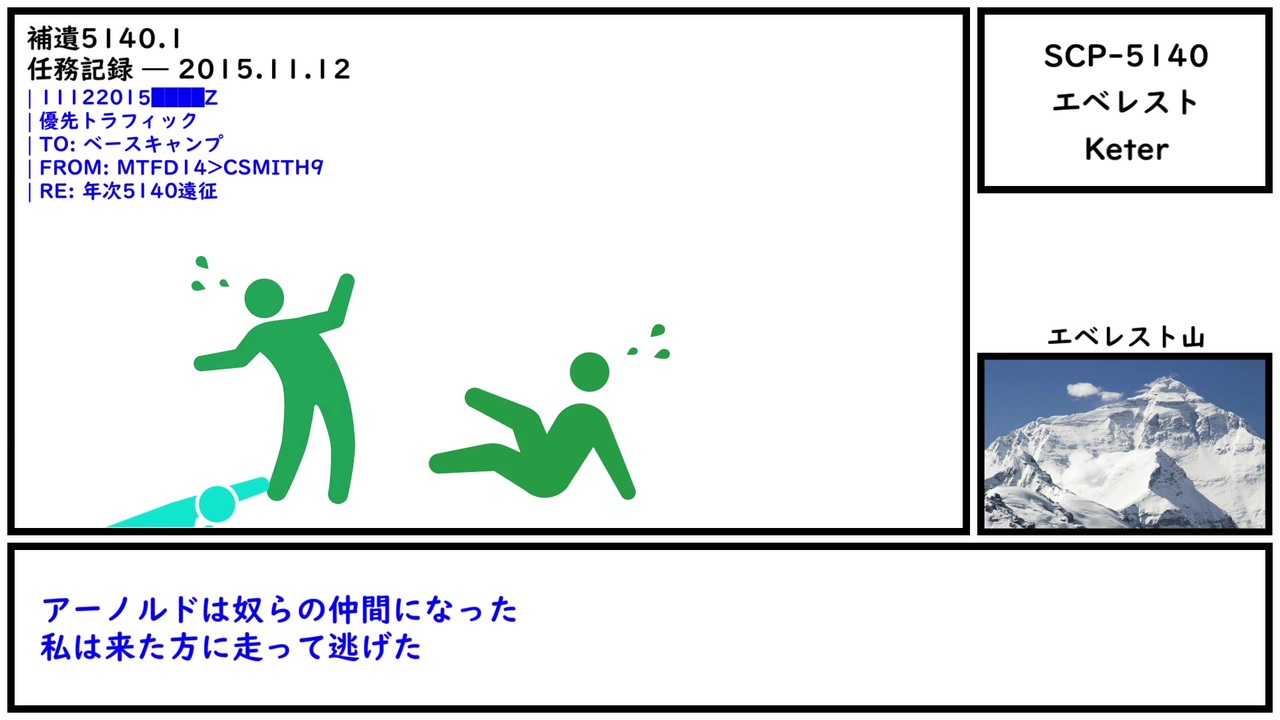 世界の最高峰は、屍で作られている。<br><br>本家記事 <a href="http://scp-wiki.wikidot.com/scp-5140" target="_blank" rel="noopener nofollow">http://scp-wiki.wikidot.com/scp-5140</a><br>翻訳記事 <a href="http://scp-jp.wikidot.com/scp-5140" target="_blank" rel="noopener nofollow">http://scp-jp.wikidot.com/scp-5140</a><br><span style="color: rgba(0, 0, 0, 0.87); font-size: 15px;">作者 </span>Rounderhouse<br><span style="color: rgba(0, 0, 0, 0.87); font-size: 15px;">SCP財団 <a href="http://scp-jp.wikidot.com" target="_blank" rel="noopener nofollow">http://scp-jp.wikidot.com</a></span><br><span style="color: #000000; font-size: 14px;">過去の動画はこちら </span><span style="color: #006699; font-size: 14px;"><a href="https://www.nicovideo.jp/mylist/67620202" target="_blank" rel="noopener">mylist/67620202</a></span><br><span style="color: rgba(0, 0, 0, 0.87); font-size: 15px;">CC-BY-SA 3.0</span>