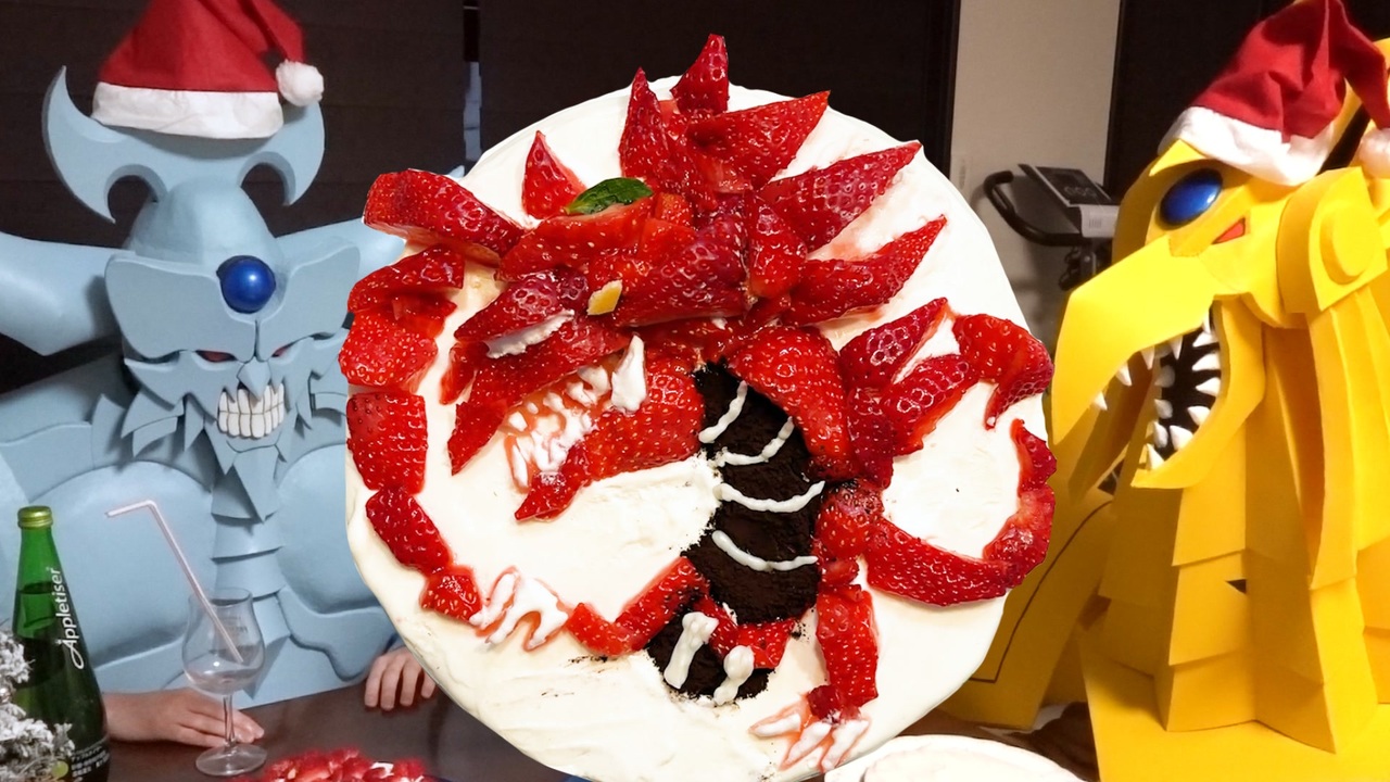 クリスマスケーキでオシリスを作るオベリスクの巨神兵