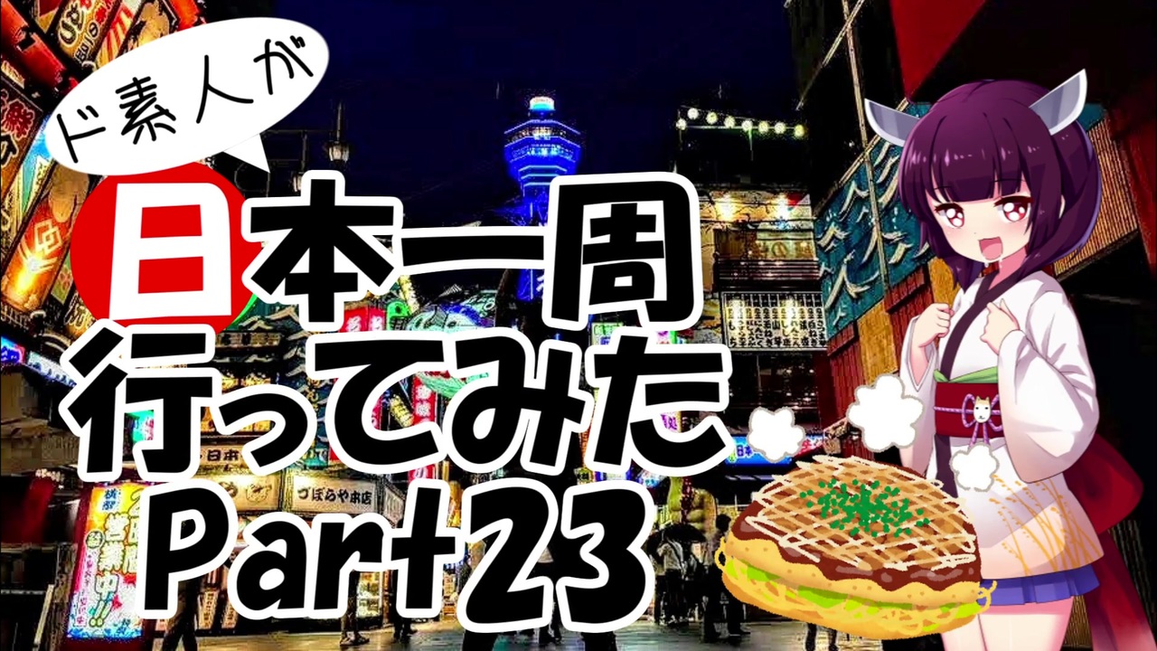 動画編集とは、それすなわち飯テロとの戦いである。<br>如何なる動画、写真を見たとしても、夜食を拒む鋼の精神力が必要なのだ。(2敗)<br><br>1080p対応です<br><br>前→Part22【<a href="https://www.nicovideo.jp/watch/sm37878589" class="watch">sm37878589</a>】<br>次→Part24【<a href="https://www.nicovideo.jp/watch/sm38118708" class="watch">sm38118708</a>】<br><br>Part1→【<a href="https://www.nicovideo.jp/watch/sm36018324" class="watch">sm36018324</a>】<br><br>今回お世話になった方<br>白黒犬さん→<a href="https://www.nicovideo.jp/user/2643866" target="_blank" rel="noopener">user/2643866</a><br>すんさん→@sunphoto3399<br>がむじじーさん→@9000Dc<br>NOAさん→@NOA_ZX14R_NINJA<br><br>ド素人が日本一周行ってみたのマイリスト→<a href="https://www.nicovideo.jp/mylist/64280441" target="_blank" rel="noopener">mylist/64280441</a><br><br>YouTube版→<a href="https://www.youtube.com/channel/UCTsmHpxtyOEQO_tkqZ4D42A" target="_blank" rel="noopener nofollow">https://www.youtube.com/channel/UCTsmHpxtyOEQO_tkqZ4D42A</a><br><br>詳細な感想などはTwitterやブログでどうぞ。<br>Twitter:<a href="https://twitter.com/kyobon_beginner" target="_blank" rel="noopener nofollow">https://twitter.com/kyobon_beginner</a><br>ブログ:<a href="https://kyobon-beginner.hatenablog.com" target="_blank" rel="noopener nofollow">https://kyobon-beginner.hatenablog.com</a>