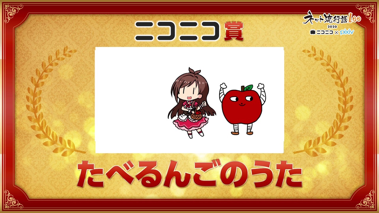 <span style="font-size: 18px;">たべるんごのうた ネット流行語100 第7位 & ニコニコ賞おめでとう!</span><br><br>ということで、おめでたい気分のうちにお祝いの動画を上げよう!<br><br>と、急遽作成。(焼き直しだけど、半年前から準備してたってことにしておいてくれ!)<br><br>原曲「見よ、勇者は帰る(ユダス・マカベウスより)」 ゲオルク・フリードリヒ・ヘンデル作曲<br>以前作ったやつ → <a href="https://www.nicovideo.jp/watch/sm37173624" class="watch">sm37173624</a><br><br>例によって音源はこちらのサイトからいただいたMIDIをあれこれいじったものです。<br>(一から作る力は私には、無い(笑)!)<br>↓<br><a href="https://mahoroba.logical-arts.jp/score/" target="_blank" rel="noopener nofollow">https://mahoroba.logical-arts.jp/score/</a><br><br><br>元祖 <a href="https://www.nicovideo.jp/watch/sm36210300" class="watch">sm36210300</a><br><br>「ネット流行語100」年間大賞2020 表彰式 生放送 <a href="https://live.nicovideo.jp/watch/lv329013503" target="_blank" rel="noopener">lv329013503</a><br><br><br><br>P.S. 課長、申し訳ありませんが本日の私は使い物になりません・・・<br><br>2020/12/18 23:20 追記<br>自身初!10000再生突破!<br>見てくださった方、広告してくださった方ありがとうございます!<br><br>2020/12/20 2:22 追記<br>これも自身初!週間アイドルマスターランキング初ランクイン!(12月第3週)<br>本当にありがとうございます!