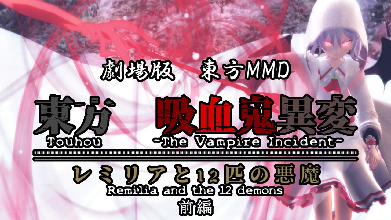 <span style="color: #ff0000; font-size: 24px;"><strong>後編→<a href="https://www.nicovideo.jp/watch/sm42462337" class="watch">sm42462337</a><br>Part1→<a href="https://www.nicovideo.jp/watch/sm37981225" class="watch">sm37981225</a><br>十五夜→<a href="https://www.nicovideo.jp/watch/sm35869865" class="watch">sm35869865</a></strong></span><br><br><br><span style="font-size: 24px;">※動画をご視聴する前に動画説明文をご覧ください。<br>・この動画はPart2です。まずPart1をご視聴下さい。</span><br>・この動画画は東方Projectの二次創作です。<br>・過度なキャラ崩壊があります。<br>・オリジナル設定があります。 <br>・オリジナルキャラクターが多数登場します。<br>・登場キャラは全てキャストだと思って頂ければと思います。<br>・厨二設定、厨二病があります。<br>・にわか東方、歴史、神話、妖怪知識です。<br>・冒頭の注意事項は必ずお読みください。<br>・30分と長い動画です、飛ばしたい方は動画説明欄の時間まで飛ばして下さい。<br><br><br>以上のことが了承頂けたら方は、部屋を暗くして、ポップコーン片手に<span style="font-size: 24px;"><strong>全画面1080pで</strong></span>動画をご視聴下さい。<br><br>今回の「テーマ」の一つでもありますが...<br>皆さん忘れてませんか?<br>レミリアは吸血鬼であり 悪魔であることを<br><br>そして<br><br><br>あの妹の <br> 姉であることを...<br><br>ちなみに他のコンセプトは 「家族愛」です<br><br><br>それでは皆様<br> <span style="color: #ff0000; font-size: 24px;">メリークリスマス</span><br><br><br>みんな大好き「レミリア・スカーレット」主演<br>カリチュマ作品<br>レミリアと愉快な紅魔館が登場する<br>赤トンボ新作 劇場版東方MMD 「東方 吸血鬼異変 レミリアと12匹の悪魔」<br>【name:赤トンボ】<br><br>侵略 <a href="#" class="seekTime" data-seekTime="05:18" onclick="seekNicoPlayer('#05:18'); return false;">#05:18</a><br>絶望 <a href="#" class="seekTime" data-seekTime="11:31" onclick="seekNicoPlayer('#11:31'); return false;">#11:31</a><br>メリークリスマス <a href="#" class="seekTime" data-seekTime="18:16" onclick="seekNicoPlayer('#18:16'); return false;">#18:16</a><br>??? <a href="#" class="seekTime" data-seekTime="21:46" onclick="seekNicoPlayer('#21:46'); return false;">#21:46</a><br>ED <a href="#" class="seekTime" data-seekTime="22:10" onclick="seekNicoPlayer('#22:10'); return false;">#22:10</a><br><br>------------------------------------------------<br />ーーーーーーーーーーーーーーーーーーーーーーーーーーーーーーーーーーーーーーーーー<br><span style="color: #ff0000; font-size: 24px;"><strong>〖赤トンボ作品一覧↓〗</strong></span><br><span style="color: #00ff00; font-size: 18px;">最新作→<a href="https://www.nicovideo.jp/watch/sm45737441" class="watch">sm45737441</a></span><br><br>東方理想郷 第一話<br>ニコニコ→<a href="https://www.nicovideo.jp/watch/sm37131715" target="_blank" rel="noopener nofollow">https://www.nicovideo.jp/watch/sm37131715</a><br>YouTube→<a href="https://youtu.be/Scu_wRShPi8" target="_blank" rel="noopener nofollow">https://youtu.be/Scu_wRShPi8</a><br>第0話→<a href="https://www.nicovideo.jp/watch/sm45547540" class="watch">sm45547540</a><br><br>【劇場版東方MMD】東方 吸血鬼異変 <br>ニコニコ→<a href="https://www.nicovideo.jp/watch/sm37981225" target="_blank" rel="noopener nofollow">https://www.nicovideo.jp/watch/sm37981225</a><br>YouTube→<a href="https://youtu.be/GhIaFZ2XvYY" target="_blank" rel="noopener nofollow">https://youtu.be/GhIaFZ2XvYY</a><br><br>十五夜<br>ニコニコ→<a href="https://www.nicovideo.jp/watch/sm35869865" target="_blank" rel="noopener nofollow">https://www.nicovideo.jp/watch/sm35869865</a><br>YouTube→<a href="https://youtu.be/c1UDzg58NCA" target="_blank" rel="noopener nofollow">https://youtu.be/c1UDzg58NCA</a><br><br>X(Twitter)→@akatonbo_mmd<br><br><span style="font-size: 10px;">検索用<br>#東方 #MikuMikuDance #MMDドラマ #MMDアクション #東方ニコ童祭 #東方シネマ #MMDシネマ<br>#東方理想郷 #八雲紫 #ルーミア #EXルーミア #伊吹萃香 #茨木華扇 #星熊勇儀 #射命丸文 #犬走椛 #八雲藍 #博麗霊夢 #酒呑童子 #風見幽香 #茨木童子 #魅魔 #姫虫百々世 #摩多羅隠岐奈 #西行寺幽々子 #魂魄妖忌 #魂魄妖夢 #古明地さとり #古明地こいし #二ツ岩マミゾウ #封獣ぬえ #河城にとり #飯綱丸龍<br>#天狗 #和風 #戦 #合戦 #鬼 #牛鬼 #鎌鼬 #常闇ノ皇 #月面戦争 #九尾の狐 #アニメ #幻想郷の賢者<br>#劇場版東方MMD #吸血鬼異変 #西方Project #レミリア・スカーレット #フランドール・スカーレット #パチュリー・ノーレッジ #紅美鈴 #紅魔館</span>