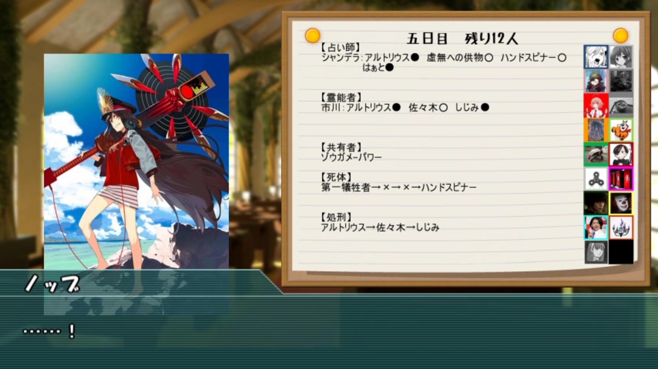 3月くらいから作り始めて、投稿までにハルヒの新刊が出て、チェンソーマンが終わってるとは夢にも思わなかったです。<br><br><span style="color: #000000; font-size: 13px;">村7/狼3/占1/霊1/狩1/共2/狐1/狂1<br><br>動画まとめ:</span><a href="https://www.nicovideo.jp/mylist/70208710" target="_blank" rel="noopener">mylist/70208710</a><br>2日目(最初)→<a href="https://www.nicovideo.jp/watch/sm37981791" class="watch">sm37981791</a><br><br>4日目(前)→<a href="https://www.nicovideo.jp/watch/sm37988854" class="watch">sm37988854</a><br><span style="color: #000000; font-size: 14px;">6日目(次)→</span><a href="https://www.nicovideo.jp/watch/sm37998509" class="watch">sm37998509</a><br><br><br><span style="color: #000000; font-size: 14px;">1村目part1→</span><a href="https://www.nicovideo.jp/watch/sm35675218" class="watch">sm35675218</a><br><br>2村目part1→<a href="https://www.nicovideo.jp/watch/sm36107674" class="watch">sm36107674</a>