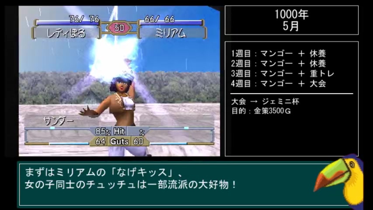 「また私何かやっちゃいましたレディ?」<br><br><span style="font-size: 13px;"><a href="https://www.nicovideo.jp/watch/sm37863092" class="watch">sm37863092</a> ≪前|<a href="https://www.nicovideo.jp/mylist/66892364" target="_blank" rel="noopener">mylist/66892364</a>|次≫ <a href="https://www.nicovideo.jp/watch/sm38096729" class="watch">sm38096729</a></span><br><br>★ 本シリーズのPart1-1:<a href="https://www.nicovideo.jp/watch/sm35940916" class="watch">sm35940916</a><br>★ 育成結果まとめブログ:<a href="https://niconicojoytori.hatenablog.jp/about" target="_blank" rel="noopener nofollow">https://niconicojoytori.hatenablog.jp/about</a><br><br>☆ 特別企画YouTube(ボイスチェンジ配信・エキシビジョンマッチ)<br><a href="https://www.youtube.com/channel/UCcsCZPs_ZmFzsC8A4xr43-g/" target="_blank" rel="noopener nofollow">https://www.youtube.com/channel/UCcsCZPs_ZmFzsC8A4xr43-g/</a><br><br><概要><br>PSゲーム「モンスターファーム2」の縛りプレイです。<br>スタートから<span style="font-size: 13px;">殿堂入りまで、</span>1体だけで目指します。<br><br><span style="font-size: 13px;">① 初期セーブデータから開始 <br>② 市販CDからモンスターを再生(自作CDはダメ) <br>③ 他モンスターの再生禁止 (週送り・金策防止)<br>④ 殿堂入りを目指す <br>⑤ ドーピング系・ソンナバナナ・白銀モモの使用禁止</span><br><br>Twtitter:<a href="https://twitter.com/niconicojoytori" target="_blank" rel="noopener nofollow">https://twitter.com/niconicojoytori</a><br>ジョイ(鳥)@モンスターファーム@niconicojoytori