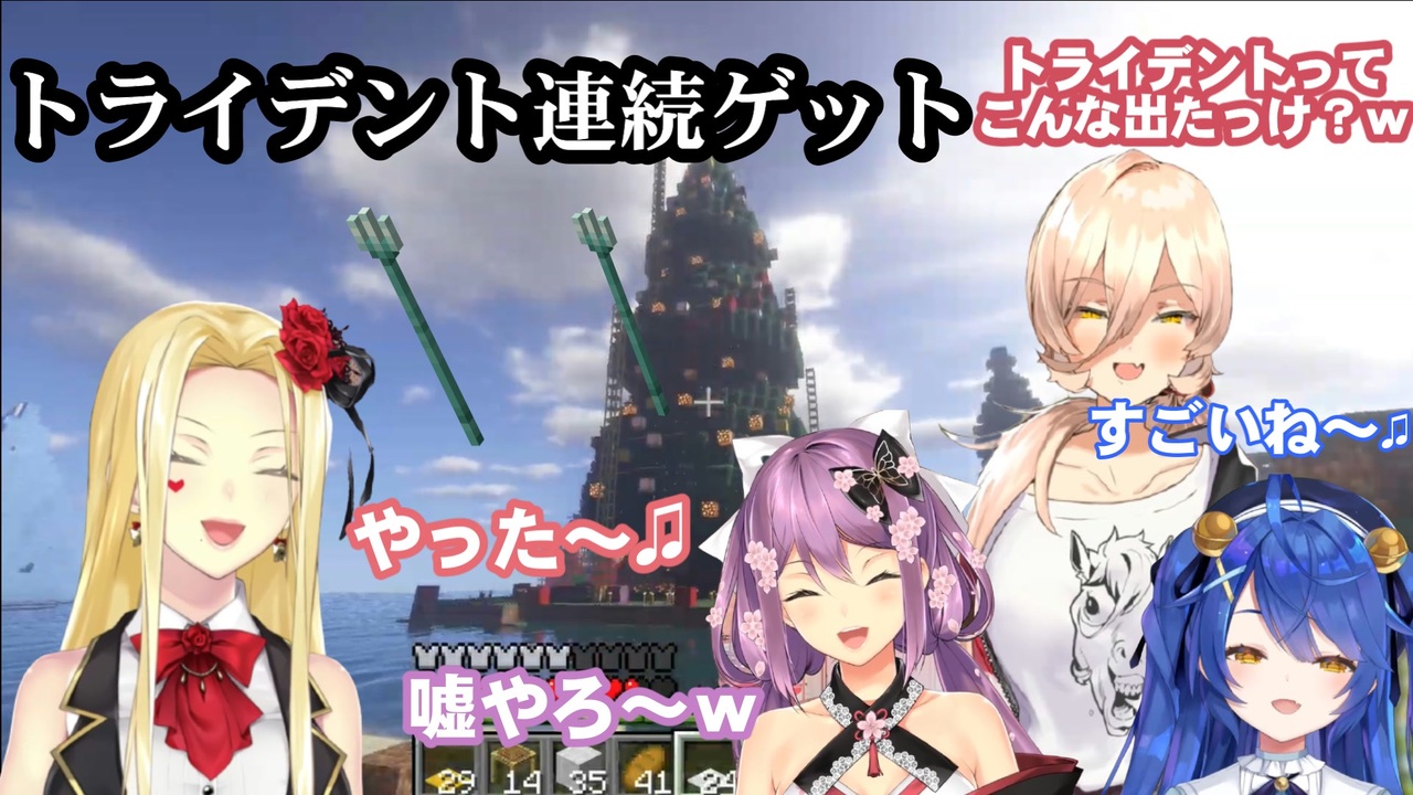 トライデント連続ゲットもスゴいし、本編の巨大クリスマスツリーがみるみる出来ていく様も圧巻で見応えもあり、とてもホワホワした癒し配信なのでオススメです。<br><br>□ルイス・キャミー<br>【アーカイブ】<br>2020/12/21【マイクラ】クリスマスツリー作り!【ルイス視点/にじさんじ】<br>【リンク】<br><a href="https://youtu.be/6Y6t10sQ-oA" target="_blank" rel="noopener nofollow">https://youtu.be/6Y6t10sQ-oA</a><br>【Twitter】<a href="https://twitter.com/Luis_Cammy" target="_blank" rel="noopener nofollow">https://twitter.com/Luis_Cammy</a><br>【YouTube】<a href="https://www.youtube.com/channel/UCb6ObE-XGCctO3WrjRZC-cw" target="_blank" rel="noopener nofollow">https://www.youtube.com/channel/UCb6ObE-XGCctO3WrjRZC-cw</a><br><br>□桜凛月さん<br>【アーカイブ】<br>【minecraft】クリスマスの準備をするよ #324【にじさんじ/桜凛月】<br>【リンク】<a href="https://youtu.be/AX6F4X0poTE" target="_blank" rel="noopener nofollow">https://youtu.be/AX6F4X0poTE</a><br>【Twitter】<a href="https://twitter.com/SAKURA_RITSUKI" target="_blank" rel="noopener nofollow">https://twitter.com/SAKURA_RITSUKI</a><br>【YouTube】<a href="https://www.youtube.com/channel/UCfQVs_KuXeNAlGa3fb8rlnQ" target="_blank" rel="noopener nofollow">https://www.youtube.com/channel/UCfQVs_KuXeNAlGa3fb8rlnQ</a><br><br>□ニュイソシエールさん<br>【アーカイブ】<br>【マイクラコラボ】みんなでクリスマスツリーを作る楽しい配信【にじさんじ/ニュイ・ソシエール】<br>【リンク】<br><a href="https://youtu.be/0G1fpNRrBn0" target="_blank" rel="noopener nofollow">https://youtu.be/0G1fpNRrBn0</a><br>【Twitter】<a href="https://twitter.com/Nui_Sociere" target="_blank" rel="noopener nofollow">https://twitter.com/Nui_Sociere</a><br>【YouTube】<br><a href="https://www.youtube.com/channel/UCUc8GZfFxtmk7ZwSO7ccQ0g" target="_blank" rel="noopener nofollow">https://www.youtube.com/channel/UCUc8GZfFxtmk7ZwSO7ccQ0g</a><br><br>□天宮こころさん<br>【アーカイブ】<br>˗ˋˏ マイクラˎˊ˗ にじ鯖クリスマス大作戦⁉│Minecraft Building( 天宮こころ/にじさんじ )<br>【リンク】<br><a href="https://youtu.be/x1b-1dhQeTU" target="_blank" rel="noopener nofollow">https://youtu.be/x1b-1dhQeTU</a><br>【Twitter】<a href="https://twitter.com/amamiya_kokoro" target="_blank" rel="noopener nofollow">https://twitter.com/amamiya_kokoro</a><br>【YouTube】<a href="https://t.co/74i8eyVD1h?amp=1" target="_blank" rel="noopener nofollow">https://t.co/74i8eyVD1h?amp=1</a><br><br>