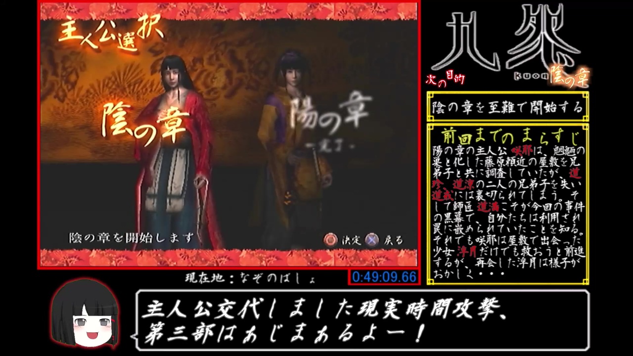 フロム・ソフトウェアがお送りする、本格和風ホラーゲームのRTA其の三です。<br><br><span style="color: #4d5156;">本作のRTAの記録は章ごとのものしか見当たらず、また動画もほぼなかったので、チャートは自作でレギュレーションも自分で決めました。<br><br>レギュレーションは、裏技などは使わず(というか知らない)ゲーム開始からクリアデータのセーブが完了するまでを計測します。あと難易度は一週目では最高となる『至難』を、全ての章で選択するようにしてます。<br><br>プレイ環境は、PS2の</span>90000型と通常の<span style="color: #4d5156;">コントローラーで、普通の実機プレイです。</span><br><br>Part3は、陰の章開始~薬師堂までです。<br><br>最近同社の隻狼以外にも和風ゲームが流行ってきてるので(〇シマ、〇クナヒメ、〇奥など)今後も増えてくれると嬉しいですね。<br><br>前<a href="https://www.nicovideo.jp/watch/sm38007693" class="watch">sm38007693</a> 次まだ <a href="https://www.nicovideo.jp/mylist/55290772" target="_blank" rel="noopener">mylist/55290772</a><br><br><br><br>
