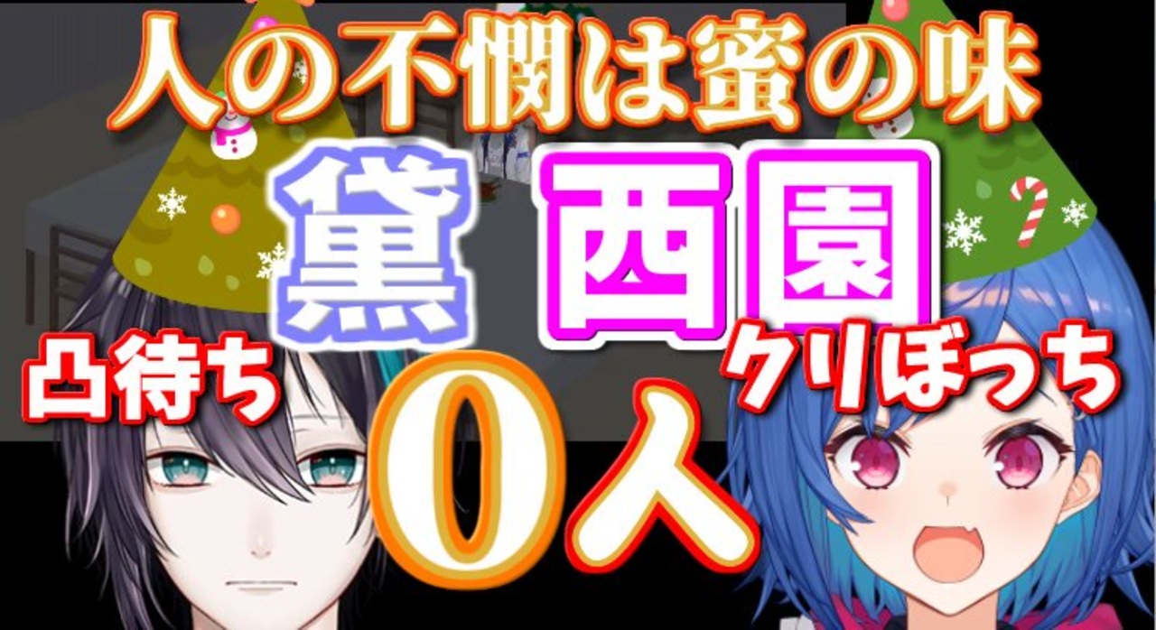 クリぼっち「西園チグサ」でトレンド入り。ボドゲではアカネのド下ネタも。<br>元放送動画<br>【検証】クリスマスイブに招集かけたら同期は何人集まるか?【にじさんじ/西園チグサ】<br><a href="https://www.youtube.com/watch?v=h3uIdc6tYIQ" target="_blank" rel="noopener nofollow">https://www.youtube.com/watch?v=h3uIdc6tYIQ</a><br><br>【10万人記念】仕込み無しでライバー凸待ちを<br>やると良くないという実例の予定が日付変更が<br>相次いだせいでもはや言葉にしていないだけで<br>事実上事前連絡をしてしまっている疑い【黛 灰 / にじさんじ】<br><a href="https://www.youtube.com/watch?v=BFIEqEnIN9A" target="_blank" rel="noopener nofollow">https://www.youtube.com/watch?v=BFIEqEnIN9A</a><br><br>コメント・広告いつもありがとうございます。<br>ツイッター<a href="https://twitter.com/karen7_7" target="_blank" rel="noopener nofollow">https://twitter.com/karen7_7</a><br>ユーチューブ <a href="https://www.youtube.com/user/syamulan2" target="_blank" rel="noopener nofollow">https://www.youtube.com/user/syamulan2</a><br>マイリスト <a href="https://www.nicovideo.jp/my/mylist/#/65569323" target="_blank" rel="noopener nofollow">https://www.nicovideo.jp/my/mylist/#/65569323</a><br>