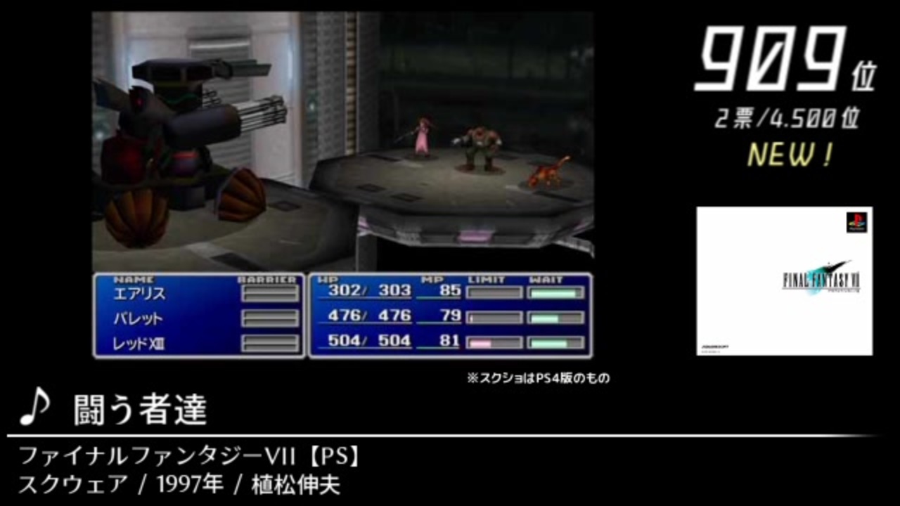 そう言えば長い刀持ったアイツも参戦したな、と<br><br><br><br>■諸般のお知らせ<br><br>・本動画は、「第13回みんなで決めるゲーム音楽ベスト100」開票結果の1位~980位までの動画化です<br> ※開票結果リンク先:<a href="https://w.atwiki.jp/gamemusicbest100/pages/8349.html" target="_blank" rel="noopener nofollow">https://w.atwiki.jp/gamemusicbest100/pages/8349.html</a><br><br> ※企画についての仔細はブログにて<br> (今回もスクショを視聴者の方々より募集しております。投稿にあたっての要項や投稿先URLもこちらに記載しております)<br><br>⇒第13回動画用ブログ:<a href="https://bit.ly/3rxGH1T" target="_blank" rel="noopener nofollow">https://bit.ly/3rxGH1T</a> (<a href="https://ch.nicovideo.jp/article/ar1958036" target="_blank" rel="noopener">ar1958036</a> からの移転先)<br><br><br><br>・全体としてネタバレだらけです。注意して下さい<br><br><br>・曲紹介の際に記載している年表記は「曲の発表年」です(基本的には出典ゲームの発売年ですが、DLCなどの都合で違ってくる場合がありますので、その際は動画内にて補足します)<br><br><br>・<a href="#" class="seekTime" data-seekTime="23:32" onclick="seekNicoPlayer('#23:32'); return false;">#23:32</a>~<br>収録時間が5分以上の曲です<br><br><br>・<a href="#" class="seekTime" data-seekTime="54:06" onclick="seekNicoPlayer('#54:06'); return false;">#54:06</a>~<br>動画投稿と前後して投稿されたスクショがありましたので、<br>楽曲ともども、別動画 (<a href="https://www.nicovideo.jp/watch/sm39004531" class="watch">sm39004531</a>) にて収録いたします<br><br><br>・<a href="#" class="seekTime" data-seekTime="66:54" onclick="seekNicoPlayer('#66:54'); return false;">#66:54</a>~<br>楽曲を短縮収録させていただきます (こちらは別動画での補完なしとなりますのでご了承ください)<br><br><br>Part2→<a href="https://www.nicovideo.jp/watch/sm37936427" class="watch">sm37936427</a> Part4→<a href="https://www.nicovideo.jp/watch/sm38114095" class="watch">sm38114095</a> マイリスト:<a href="https://www.nicovideo.jp/mylist/69791041" target="_blank" rel="noopener">mylist/69791041</a>