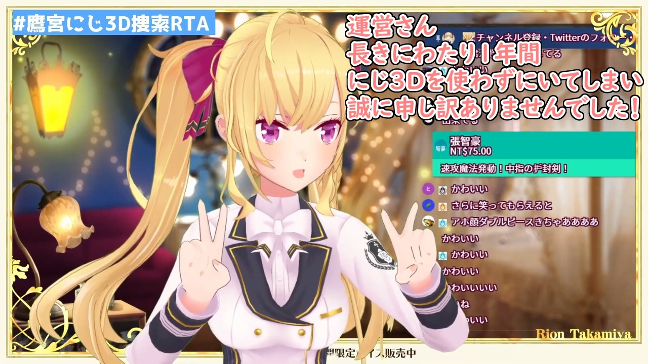 お嬢のメチャクチャ3Dかわいい<br>年内お披露目達成おめでとう!<br><br>本家参考動画<br>・鷹宮リオン<br>【#鷹宮にじ3D捜索RTA】Part2 いよいよお披露目へ!?乞うご期待!(現在まだ発見されていません)【にじさんじ/鷹宮リオン】<br><a href="https://youtu.be/XdIJgS3Uyiw" target="_blank" rel="noopener nofollow">https://youtu.be/XdIJgS3Uyiw</a><br>・リゼ・ヘルエスタ<br>【雑談】新しくなったにじ3Dをお披露目したい!【にじさんじ/リゼ・ヘルエスタ】<br><a href="https://youtu.be/JJXo2xN4teU" target="_blank" rel="noopener nofollow">https://youtu.be/JJXo2xN4teU</a><br>・星川サラ<br>【にじ3Dお披露目】星川かわいいから見て!!!【星川サラ/にじさんじ】<br><a href="https://youtu.be/6WiGyFLIXxs" target="_blank" rel="noopener nofollow">https://youtu.be/6WiGyFLIXxs</a><br><br>参考元チャンネル&Twitter<br>・鷹宮リオン<br><a href="https://www.youtube.com/channel/UCV5ZZlLjk5MKGg3L0n0vbzw" target="_blank" rel="noopener nofollow">https://www.youtube.com/channel/UCV5ZZlLjk5MKGg3L0n0vbzw</a><br><a href="https://twitter.com/TakamiyaRion" target="_blank" rel="noopener nofollow">https://twitter.com/TakamiyaRion</a><br>・リゼ・ヘルエスタ<br><a href="https://www.youtube.com/channel/UCZ1xuCK1kNmn5RzPYIZop3w" target="_blank" rel="noopener nofollow">https://www.youtube.com/channel/UCZ1xuCK1kNmn5RzPYIZop3w</a><br><a href="https://twitter.com/Lize_Helesta" target="_blank" rel="noopener nofollow">https://twitter.com/Lize_Helesta</a><br>・星川サラ<br><a href="https://www.youtube.com/channel/UC9V3Y3_uzU5e-usObb6IE1w" target="_blank" rel="noopener nofollow">https://www.youtube.com/channel/UC9V3Y3_uzU5e-usObb6IE1w</a><br><a href="https://twitter.com/Sara_Hoshikawa" target="_blank" rel="noopener nofollow">https://twitter.com/Sara_Hoshikawa</a><br><br>ニコニコのダイコンマンリスト<br>「バーチャルYouTuberシリーズ」↓<br><a href="https://www.nicovideo.jp/mylist/62551838" target="_blank" rel="noopener">mylist/62551838</a><br>「バーチャルYouTuberシリーズ2」↓<br><a href="https://www.nicovideo.jp/mylist/67858437" target="_blank" rel="noopener">mylist/67858437</a><br><br>YouTubeのダイコンマンチャンネル<br><a href="https://www.youtube.com/channel/UCkpfR11cG2kk9KTJijWCJfg" target="_blank" rel="noopener nofollow">https://www.youtube.com/channel/UCkpfR11cG2kk9KTJijWCJfg</a><br><br>ダイコンマンのTwitter<br><a href="https://twitter.com/Daikon_Man_V" target="_blank" rel="noopener nofollow">https://twitter.com/Daikon_Man_V</a>