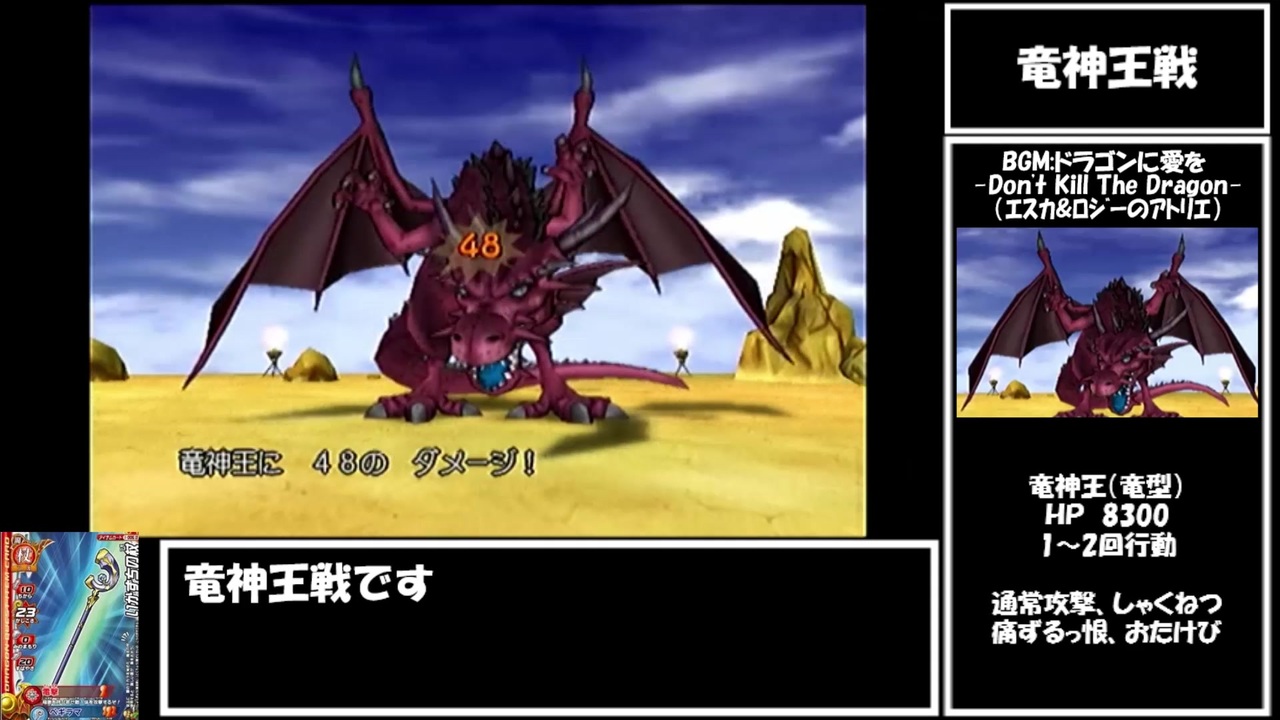 謹賀新年なので初投稿です。<br><br>クリア後~竜神王(竜型)戦まで<br><br><a href="https://www.nicovideo.jp/watch/sm38009150" class="watch">sm38009150</a>←前 <a href="https://www.nicovideo.jp/mylist/69843141" target="_blank" rel="noopener">mylist/69843141</a> 次→<a href="https://www.nicovideo.jp/watch/sm38064781" class="watch">sm38064781</a><br><br>生放送用を行うコミュ co4518186<br>Twitter:<a href="https://twitter.com/imomushidq8" target="_blank" rel="noopener nofollow">https://twitter.com/imomushidq8</a><br><br>【ルール】<br>①道具の使用のみで戦闘を行う。(ぼうぎょ・ためるは可能)<br>②移動中の呪文・特技の使用禁止。(すべて道具で行う)<br>③倒せないモンスターは、多少妥協する。<br>④なるべく失踪しない。<br><br>この動画で利用している株式会社スクウェア・エニックスを代表とする共同著作者が権利を所有する著作物及びスギヤマ工房有限会社が権利を所有する楽曲の転載・配布は禁止いたします。<br>© 2004 ARMOR PROJECT/BIRD STUDIO/LEVEL-5/SQUARE ENIX All Rights Reserved.<br>© SUGIYAMA KOBO<br><br><br>