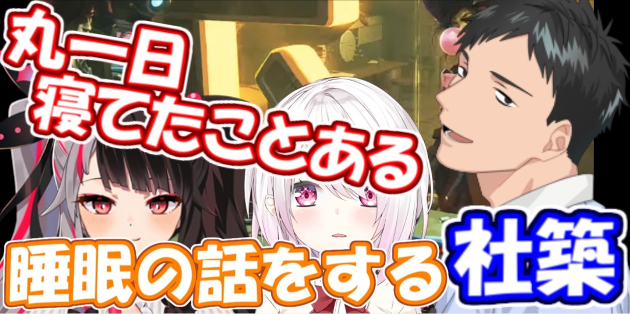 自分の場合、寝貯めすると<br>次の日、寝なくても良いというより<br>生活リズムが崩れて<br>起きている時間帯がズレてしまう感じ<br>になりますねぇ<br><br>■元動画■<br>【Apex Legends】闇鍋最協ランクマ【にじさんじ/社築/夜見れな/椎名唯華】<br><a href="https://www.youtube.com/watch?v=WNDhjY5DCNs&t=12316s" target="_blank" rel="noopener nofollow">https://www.youtube.com/watch?v=WNDhjY5DCNs&t=12316s</a><br><br>■チャンネル情報■<br>社築<br><a href="https://www.youtube.com/channel/UCKMYISTJAQ8xTplUPHiABlA" target="_blank" rel="noopener nofollow">https://www.youtube.com/channel/UCKMYISTJAQ8xTplUPHiABlA</a><br><br>夜見れな<br><a href="https://www.youtube.com/channel/UCL34fAoFim9oHLbVzMKFavQ" target="_blank" rel="noopener nofollow">https://www.youtube.com/channel/UCL34fAoFim9oHLbVzMKFavQ</a><br><br>椎名唯華<br><a href="https://www.youtube.com/channel/UC_4tXjqecqox5Uc05ncxpxg" target="_blank" rel="noopener nofollow">https://www.youtube.com/channel/UC_4tXjqecqox5Uc05ncxpxg</a><br><br>■youtube版■<br><a href="https://youtu.be/Kkr43IMSQwg" target="_blank" rel="noopener nofollow">https://youtu.be/Kkr43IMSQwg</a>