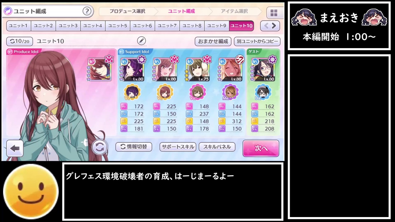 グレフェスよりは見所がありそうなので初投稿です。<br><br>プレイも解説もヘタクソですが、こういう動画がニコニコに少ないので作ってみました。<br>個人的にはシ/ャ/ニ/マ/ス/M/A/Dだけじゃなくてプレイ動画とかも増えて欲しいなって思ってます。<br><br>※動画で言及するのを忘れてましたが、シャニマスおみくじの効果でサポートアイドルの初期絆が上昇しています。