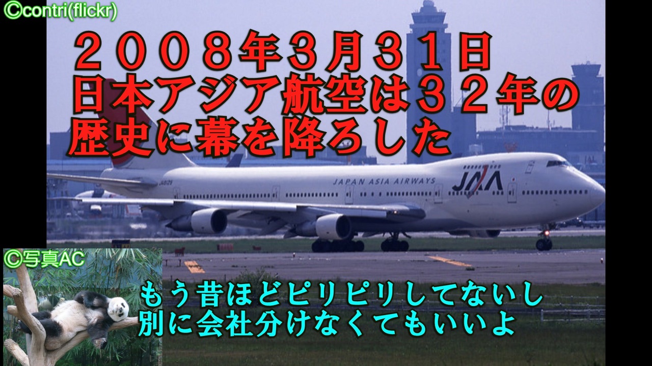 前編はこちら→<a href="https://www.nicovideo.jp/watch/sm38052031" class="watch">sm38052031</a><br><br>数々の紆余曲折を経てようやく運航開始にこぎ着けた日本アジア航空。創立当初こそ困難が続きましたが、次第に台湾路線に特化した航空会社としてJAL本体とは別の立ち位置を築きます。そんな台湾路線のスペシャリストも2008年3月31日を持ってJAL本体に吸収され、32年間の歴史に幕を降ろしました。日本アジア航空が消えた理由もまた、中国と台湾との外交関係の変化によるものだったのです。<br /><span style="color: #000000; font-size: 14px;">迷航空会社列伝</span><span style="color: #006699; font-size: 14px;"><a href="https://www.nicovideo.jp/mylist/24098760" target="_blank" rel="noopener">mylist/24098760</a></span><span style="color: #000000; font-size: 14px;"> 迷列車北陸編</span><span style="color: #006699; font-size: 14px;"><a href="https://www.nicovideo.jp/mylist/19084652" target="_blank" rel="noopener">mylist/19084652</a> </span><span style="color: #000000; font-size: 14px;">東海道交通戦争</span><span style="color: #006699; font-size: 14px;"><a href="https://www.nicovideo.jp/mylist/57958388" target="_blank" rel="noopener">mylist/57958388</a></span><span style="color: #000000; font-size: 14px;"> 交通機関の栄枯盛衰 </span><a href="https://www.nicovideo.jp/mylist/66898301" target="_blank" rel="noopener">mylist/66898301</a><br><span style="color: #000000; font-size: 14px;">ブログ→</span><span style="color: #006699; font-size: 14px;"><a href="http://www.meihokuriku-alps.com" target="_blank" rel="noopener nofollow">http://www.meihokuriku-alps.com</a></span><br>note→<a href="https://note.com/meihokuriku" target="_blank" rel="noopener nofollow">https://note.com/meihokuriku</a><br><span style="color: #000000; font-size: 14px;">使用BGM<br>甘茶の音楽工房様 </span><span style="color: #006699; font-size: 14px;"><a href="http://amachamusic.chagasi.com/index.html" target="_blank" rel="noopener nofollow">http://amachamusic.chagasi.com/index.html</a></span><br><span style="color: #000000; font-size: 14px;">魔王魂様 </span><span style="color: #006699; font-size: 14px;"><a href="https://maoudamashii.jokersounds.com/list/bgm5.html" target="_blank" rel="noopener nofollow">https://maoudamashii.jokersounds.com/list/bgm5.html</a></span>