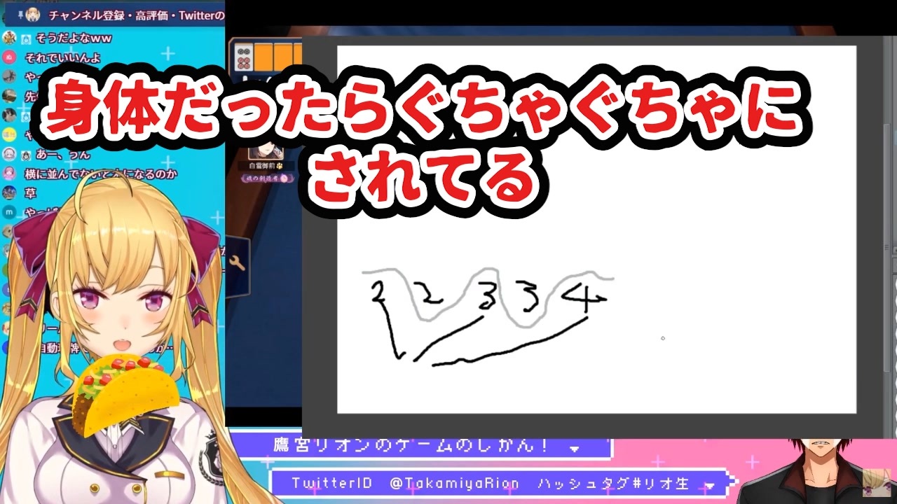 お嬢の考えちゃんと聞いたらなるほどなってなったわ<br>ポン扱いしてすまんかった<br><br><br>【配信元】<br>【にじさんじ】新春!にじさんじ麻雀杯2021予選後半戦【#にじさんじ麻雀杯】<br><a href="https://youtu.be/aUwZQX8EaqI" target="_blank" rel="noopener nofollow">https://youtu.be/aUwZQX8EaqI</a><br><br>【#にじさんじ麻雀杯】Iチーム!麻雀歴8回目【にじさんじ/鷹宮リオン 本間ひまわり ドーラ 白雪巴】<br><a href="https://youtu.be/SeqMKXcme1Y" target="_blank" rel="noopener nofollow">https://youtu.be/SeqMKXcme1Y</a><br><br>【麻雀】教えて!天開司先生!明日決勝【にじさんじ/鷹宮リオン】<br><a href="https://youtu.be/UFEehsjtWuQ" target="_blank" rel="noopener nofollow">https://youtu.be/UFEehsjtWuQ</a><br><br>【チャンネル】<br>鷹宮リオン→<a href="https://www.youtube.com/channel/UCV5ZZlLjk5MKGg3L0n0vbzw" target="_blank" rel="noopener nofollow">https://www.youtube.com/channel/UCV5ZZlLjk5MKGg3L0n0vbzw</a><br>天開司→<a href="https://www.youtube.com/channel/UCZYyhgoV314CM14zBD6vd4A" target="_blank" rel="noopener nofollow">https://www.youtube.com/channel/UCZYyhgoV314CM14zBD6vd4A</a><br>