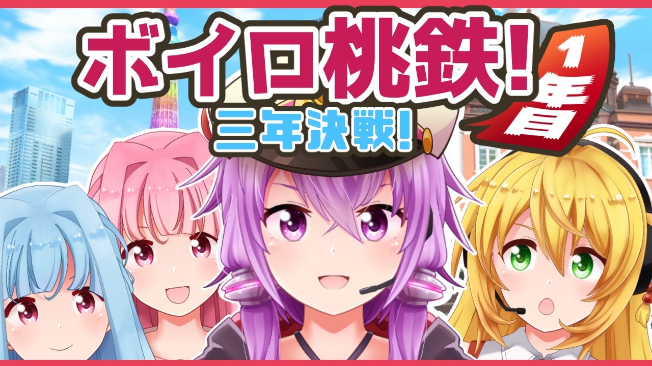 お久しぶりです(定型文)。<br><br>作ったボイロLive2D活かしつつ、楽しそうなゲームを実況してみたかったので桃鉄の3年決戦を遊んでみました。<br>この動画は1年目。短い動画にしたかったのですが、おかげで過去一の爆速トークになりました、今後調整するかも。<br>桃鉄自体はフレ含め初心者ダヨ(´・ω・`)<br><br>↓キャラクター紹介↓<br>★結月ゆかり:プレイヤーカラーに紫が入る世界線に行きたい。<br>★弦巻マキ:金運がありそうで無さそう。スリの銀次を許さない。<br>★琴葉茜:妹と家計が違う可能性がある。マイトピックスはいつもエビフライ。<br>★琴葉葵:姉より稼ぎたいお年頃。背伸びできるか!?<br><br>次→:(<a href="https://www.nicovideo.jp/watch/sm38133629" class="watch">sm38133629</a>)<br><br><br>ついった→<a href="https://twitter.com/Scarlet_Sky_" target="_blank" rel="noopener nofollow">https://twitter.com/Scarlet_Sky_</a><br><br>ボイロ桃鉄3年決戦マイリスト→<a href="https://www.nicovideo.jp/mylist/70428314" target="_blank" rel="noopener">mylist/70428314</a><br>総合マイリスト→<a href="https://www.nicovideo.jp/mylist/59327986" target="_blank" rel="noopener">mylist/59327986</a><br>Youtube版→<a href="https://youtu.be/wZN3o1xWkq8" target="_blank" rel="noopener nofollow">https://youtu.be/wZN3o1xWkq8</a><br>