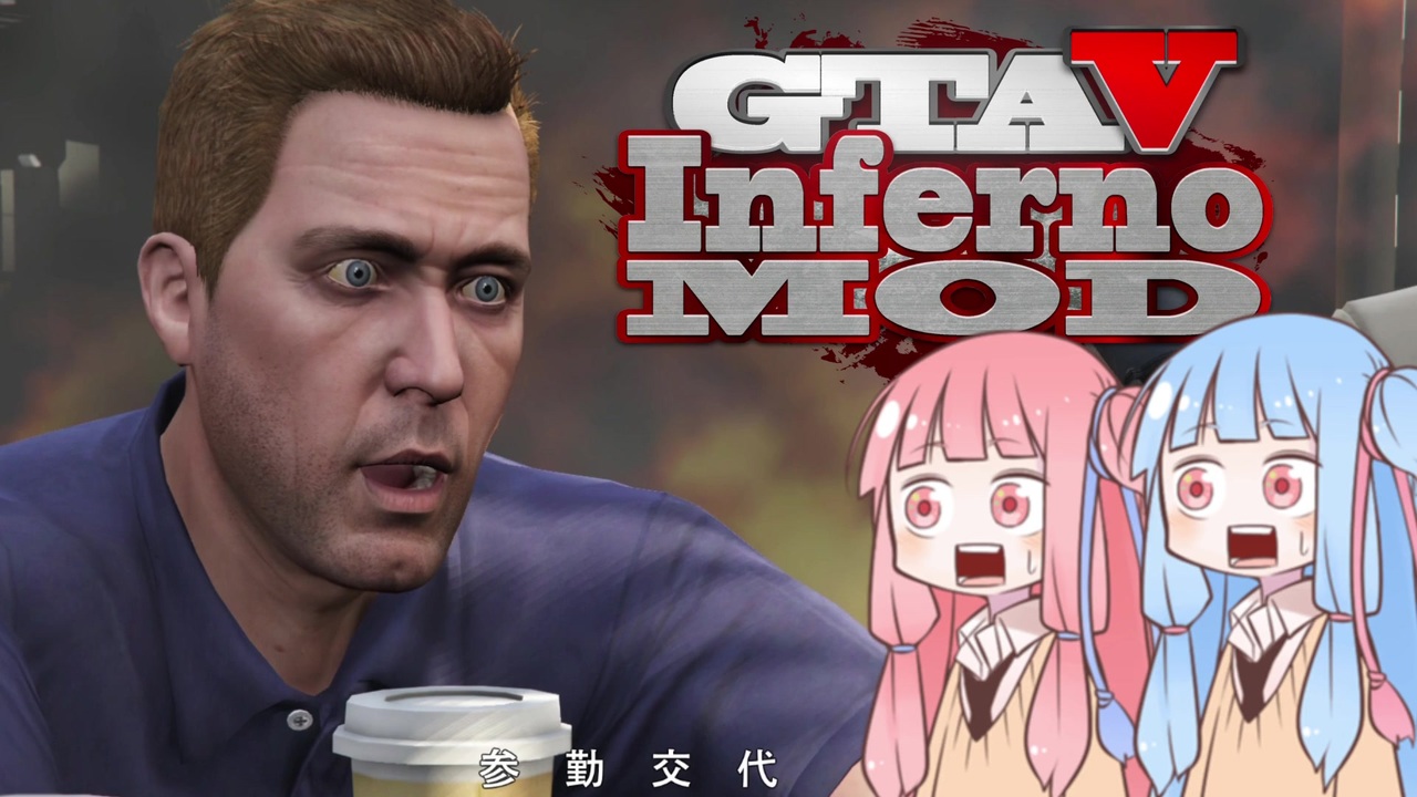 どうも、JACK(将軍)です。<br>今回も、PC版「Grand Theft Auto V」の<strong>インフェルノMOD</strong>で遊んでいきます。<br>引き続き、マイケルのミッション。FIB捜査官のデイブの上司に会いに行く所から。<br>マイケル、フランクリン、そして、トレバーの3人で、ミスターKをIAAの本部から奪還します。<br>トレバーが楽しそうで、なんか和みますね。<br><br>今回は、まあ、程々の難易度でしたね。<br>相変わらず、カオスなムービーのせいで、話が頭に入ってこないですね。楽しい。<br><br>支援絵を描いて頂きました!嬉しい!!!みんな見てね。<br>インフェルノMODは地獄やで!(支援絵)[<a href="https://seiga.nicovideo.jp/seiga/im10671591" target="_blank" rel="noopener">im10671591</a>]:G-bit様<br><br><br>たくさんコメントしてもらって嬉しいです!ありがとー。<br>広告もいつもありがとうございます!<br><br><br>動画内で使用してる機能(追加したり減らしたりするかも)<br>・カオスモード(市民が暴徒化)<br>・市民暴走運転(そのまんま)<br>・市民ニトロ(市民の車がニトロで急加速)<br>・空挺市民兵召喚(市民がパラシュート降下してくる)<br>・市民車両強盗(そのまんま)←たまにエラーで発動しない<br>・その他、自動で発動したり任意で使える便利(?)機能<br><br>MOD製作者のとりすーぷ様→<a href="https://www.nicovideo.jp/user/15846296" target="_blank" rel="noopener">user/15846296</a><br><br><br><span style="color: #ff0000; font-size: 24px;">今年も程々に頑張ります。よろしくね。</span><br><br><br>可愛い姉妹の立ち絵(<a href="https://seiga.nicovideo.jp/seiga/im5274301" target="_blank" rel="noopener">im5274301</a>):新島秋一様<br><br> <a href="https://www.nicovideo.jp/watch/sm38031623" class="watch">sm38031623</a>←前 次→<a href="https://www.nicovideo.jp/watch/sm38161369" class="watch">sm38161369</a><br><br>その他のpart1→<a href="https://www.nicovideo.jp/mylist/44911807" target="_blank" rel="noopener">mylist/44911807</a><br>時々生放送してたり→co1632431<br>twitter→<a href="https://twitter.com/jackshougun" target="_blank" rel="noopener nofollow">https://twitter.com/jackshougun</a><br>