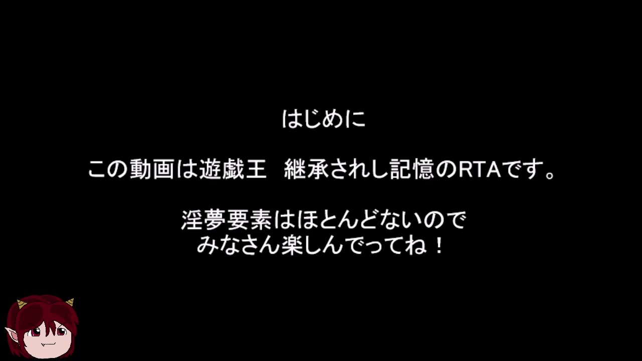 初RTAなので初投稿です。ご指導のほどよろしくお願いします。<br><br>『遊戯王 真デュエルモンスターズⅡ 継承されし記憶』の『Any% (No Passwords) - Emulator』です。<br>雷電娘々チャートですが、実質的には双頭の雷龍チャートです。<br>また、Speedrunで確認できる限り、世界10位です。<br>でも他走者は全員、3時間切ってるねんな……<br><br>※2021/03/05追記<br>月間RTAランキングで45位でした。うれしい。<br><br>開始 ~ マーガレット戦 まで<br><br>カルアミルク兄貴の封印RTA:<a href="https://www.nicovideo.jp/watch/sm30201438" class="watch">sm30201438</a><br>最初:<a href="https://www.nicovideo.jp/watch/sm38109172" class="watch">sm38109172</a><br>次:<a href="https://www.nicovideo.jp/watch/sm38155263" class="watch">sm38155263</a><br>マイリス:<a href="https://www.nicovideo.jp/mylist/70350009" target="_blank" rel="noopener">mylist/70350009</a><br>――――――――――――――――――――――――――――――――――――――――――――――<br>動画内でカルアミルク兄貴の名前をだす許可を、ニコ生中の本人から頂きました。<br>名乗りもしない唐突なお願い(超無礼)にも関わらず、快く許可して頂きありがとうございました。<br><span style="color: #999999;">これで遠慮なく人気に乗っかれるぜ!ドン★</span><br>――――――――――――――――――――――――――――――――――――――――――――――<br>ゆっぱちぇ さん あやはら さん <a href="https://www.nicovideo.jp/watch/sm13869948" class="watch">sm13869948</a> さん ワンツー さん 雪達磨 さん 海千山千 さん アストラ さん 141 さん [エトセトーラ] さん 2Pカラー さん ステップジョニー さん<br>広告ありがとならず者傭兵部隊!<br />―――――――――――――――――――――――――――――――――――――――――――――――<br>YMM4を用いたbiimシステム動画の作り方を書きました。参考にしてどんどん作って、どうぞ。<span style="font-size: 10px;">(でも内輪ネタだらけのブログに書いてるから恥ずかしい……)</span><br><a href="http://narou-kuso.blog.jp/archives/10161099.html" target="_blank" rel="noopener nofollow">http://narou-kuso.blog.jp/archives/10161099.html</a>