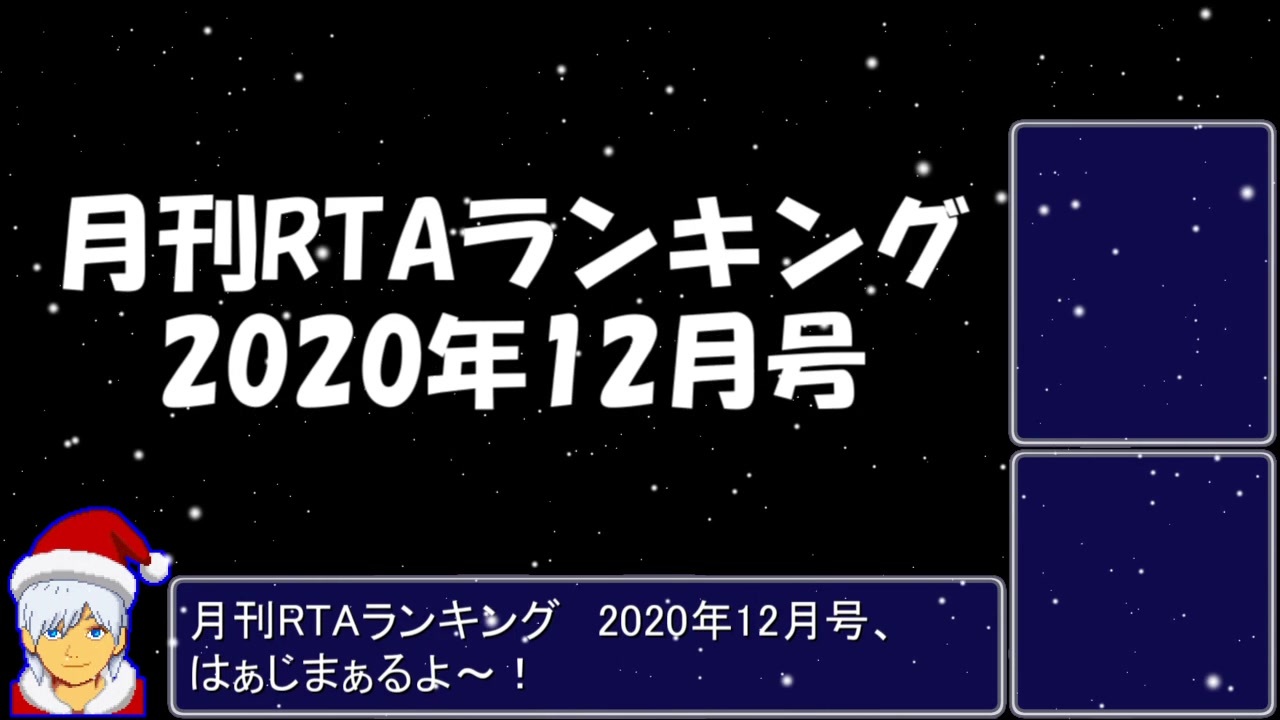 ランキングについての詳細(<a href="https://ch.nicovideo.jp/article/ar1944234" target="_blank" rel="noopener">ar1944234</a>)<br><br>11月号(<a href="https://www.nicovideo.jp/watch/sm37969104" class="watch">sm37969104</a>) | 12月号(こ↑こ↓) | 2020年号(<a href="https://www.nicovideo.jp/watch/sm38142807" class="watch">sm38142807</a>)<br><br> 1位~100位(<a href="https://www.nicovideo.jp/mylist/70365251" target="_blank" rel="noopener">mylist/70365251</a>)<br><br>この動画で利用している株式会社スクウェア・エニックスを代表とする共同著作者が権利を所有する著作物及びスギヤマ工房有限会社が権利を所有する楽曲の転載・配布は禁止いたします。<br>© 1996 ARMOR PROJECT/BIRD STUDIO/HEART BEAT/SQUARE ENIX All Rights Reserved.<br>© SUGIYAMA KOBO