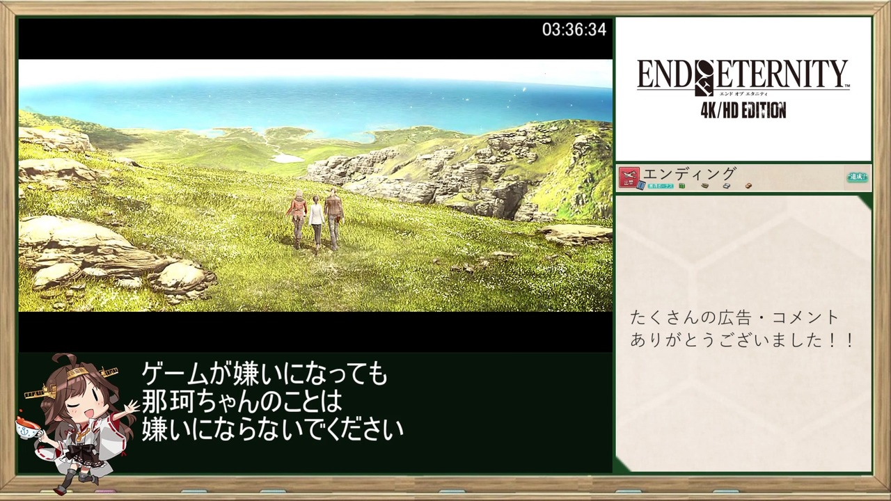 大切なものは、その手の那珂に。<br><br>【GAME】 <br>END OF ETERNITY 4K/HD EDITION<br>(エンドオブエタニティ)<br>Steam(PC版)<br><br>【レギュレーション】<br>・計測区間:START GAME選択~クリアデータセーブ説明文表示<br><br>【<a href="https://www.nicovideo.jp/mylist/69524868" target="_blank" rel="noopener">mylist/69524868</a>】 <br>PREV≫<a href="https://www.nicovideo.jp/watch/sm38060101" class="watch">sm38060101</a><br><br>Part.1≫<a href="https://www.nicovideo.jp/watch/sm37506037" class="watch">sm37506037</a><br><br>≪前作RTA≫【PC版】FINAL FANTASY Ⅸ RTA_9:28:31_Part.1<br>≫<a href="https://www.nicovideo.jp/watch/sm36151772" class="watch">sm36151772</a><br><br>Other Cielo’s Title <br>【<a href="https://www.nicovideo.jp/mylist/50418741" target="_blank" rel="noopener">mylist/50418741</a> 】<br><br>twitter <a href="https://twitter.com/Cielo_Polo" target="_blank" rel="noopener nofollow">https://twitter.com/Cielo_Polo</a><br>