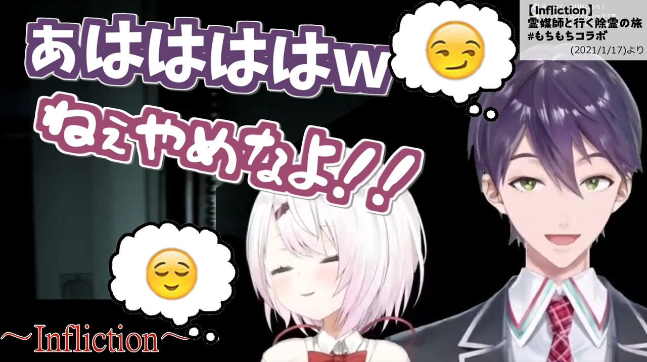 かわいい<br>椎名唯華 <a href="https://www.youtube.com/channel/UC_4tXjqecqox5Uc05ncxpxg?sub_confirmation=1" target="_blank" rel="noopener nofollow">https://www.youtube.com/channel/UC_4tXjqecqox5Uc05ncxpxg?sub_confirmation=1</a><br>剣持刀也 <a href="https://www.youtube.com/channel/UCv1fFr156jc65EMiLbaLImw?sub_confirmation=1" target="_blank" rel="noopener nofollow">https://www.youtube.com/channel/UCv1fFr156jc65EMiLbaLImw?sub_confirmation=1</a><br><br>〇▼元動画<br>【Infliction】霊媒師と行く除霊の旅 #もちもちコラボ 【剣持刀也・椎名唯華/にじさんじ】(2021/1/17)<br><a href="https://www.youtube.com/watch?v=U837mYKhotM" target="_blank" rel="noopener nofollow">https://www.youtube.com/watch?v=U837mYKhotM</a><br><br>〇▼前回<br>【Infliction】除霊いってきます…(´;ω;`)#もちもちコラボ 【椎名唯華・剣持刀也/にじさんじ】(2021/1/13)<br><a href="https://www.youtube.com/watch?v=rD7PnPQRE-4" target="_blank" rel="noopener nofollow">https://www.youtube.com/watch?v=rD7PnPQRE-4</a>