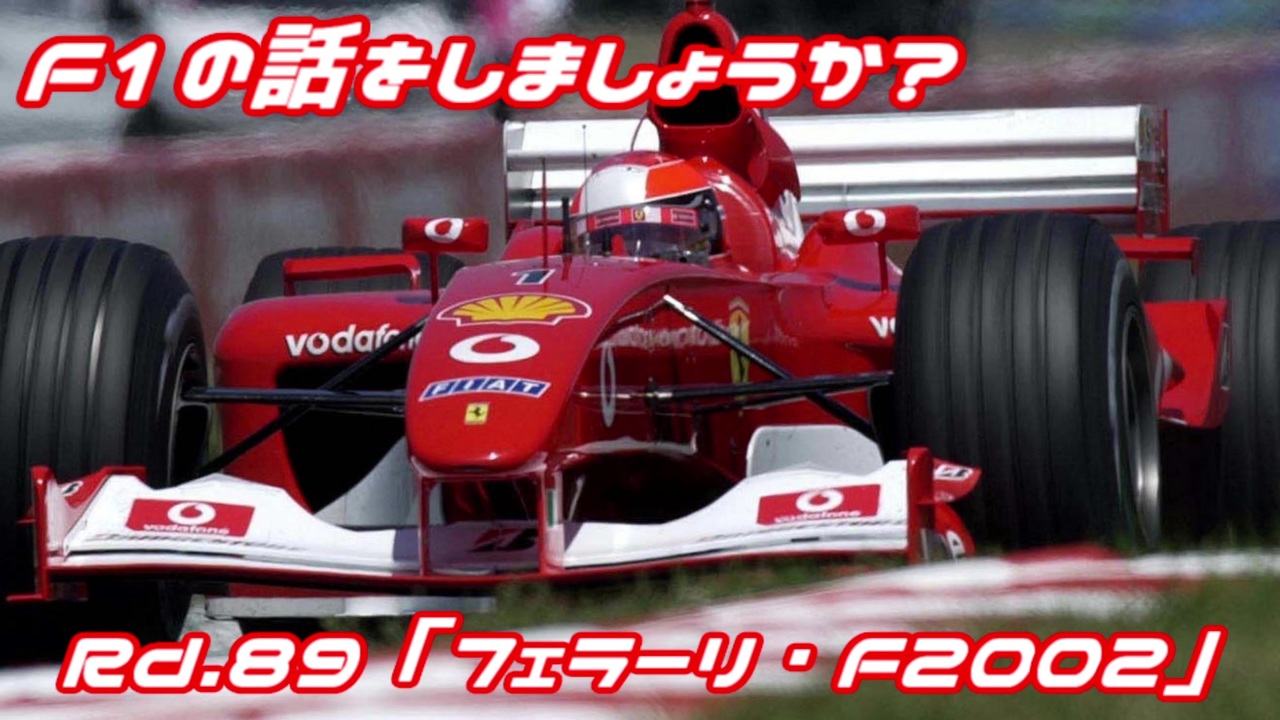「毎年我々は新しいものを見つけ、より速くなる。それがF1だ」byミハエル・シューマッハ<br><br><br>毎回1つのテーマを取り上げ、F1の魅力をお伝えします。<br>第89回目は2002年に登場し、全レース完走、全レース表彰台、勝率80%以上という<br>離れ業をやってのけた2000年代・最強の跳ね馬「フェラーリ・F2002」を紹介します。高い信頼性と速さを発揮した「F2002」はフェラーリの歴史の中でも黄金期のマシンの1台として<br>今でもファンの記憶に刻まれています。<br><br><span style="color: #ff0000;">(ご注意)この動画の情報は真実とは限りません。また、誤字・脱字が含まれる場合があります。ご了承ください。</span><br><br><br>前→<a href="https://www.nicovideo.jp/watch/sm38029771" class="watch">sm38029771</a><br>次→<a href="https://www.nicovideo.jp/watch/sm39223024" class="watch">sm39223024</a><br><br>F1の話をしましょうか?マイリスト→<a href="https://www.nicovideo.jp/mylist/40499353" target="_blank" rel="noopener">mylist/40499353</a><br><br>F1の話をしましょうか?OPフルバージョンマイリスト→<a href="https://www.nicovideo.jp/mylist/59030210" target="_blank" rel="noopener">mylist/59030210</a><br>F1 CM集マイリスト→<a href="https://www.nicovideo.jp/mylist/57297507" target="_blank" rel="noopener">mylist/57297507</a><br>F1 2018シーズンの話をしましょうか?マイリスト→<a href="https://www.nicovideo.jp/mylist/61514606" target="_blank" rel="noopener">mylist/61514606</a><br>F1 2019シーズンの話をしましょうか?マイリスト→<a href="https://www.nicovideo.jp/mylist/64678414" target="_blank" rel="noopener">mylist/64678414</a><br>F1 2020シーズンの話をしましょうか?マイリスト→<a href="https://www.nicovideo.jp/mylist/67651731" target="_blank" rel="noopener">mylist/67651731</a><br><br>