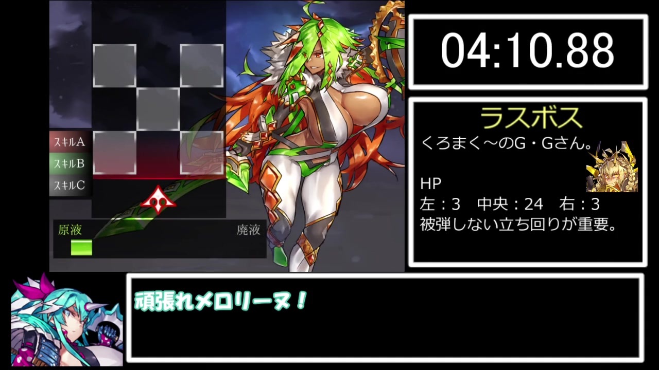 人の出会いってのは運命できめられてるのかもしれねえな(諦観)<br><span style="color: #ffffff;">余計な方はやっぱり駄目だったよ。アイツ(投稿者)は手が描けないからな。</span><br><span style="color: #262626;">注意書き</span><br>この動画には以下の要素が含まれます。<br>・人型ドリンクバーを操作するR-18なアクションRPG<br>・ボイスロイドによる解説<br>・biimシステムの使用<br>・淫〇ボイスはありません<br><span style="color: #000000; font-size: 14px;">・Q:ほんへ後のアレは何? A:愛故に</span><br><br>参考にしました<br>ジェネル様→<a href="https://www.nicovideo.jp/watch/sm37370125" class="watch">sm37370125</a><br><span style="color: #ffffff;">製作者様にも走ったのバレて草。やべぇよやべぇよ・・・。</span><br>このゲーム『ドリンクバーメイド-自由なる咆哮-』は以下のリンク先にて好評販売中!<br><a href="https://www.dlsite.com/maniax/work/=/product_id/RJ221353.html" target="_blank" rel="noopener nofollow">https://www.dlsite.com/maniax/work/=/product_id/RJ221353.html</a><br><br>前回の黒くて再起動な脱出劇(下)→<a href="https://www.nicovideo.jp/watch/sm38062024" class="watch">sm38062024</a><br>今までの→<a href="https://www.nicovideo.jp/series/111653" target="_blank" rel="noopener">series/111653</a><br>次→<a href="https://www.nicovideo.jp/watch/sm38270940" class="watch">sm38270940</a><br><span style="color: #ffffff;">ちなみに最終決戦でもう1つの選択肢を選ぶ場合、メロリーヌかストロベリンスキーを最大強化してスキルAで殴りあって下さい。それしか勝ち目がにぃ。<br>さらにBルートRTAやりたい人は、本チャートに沿って行動したのちジンジャーさんから得られたPCでメロリーヌを最大強化後、もう1つの最終決戦に挑んでください。</span>