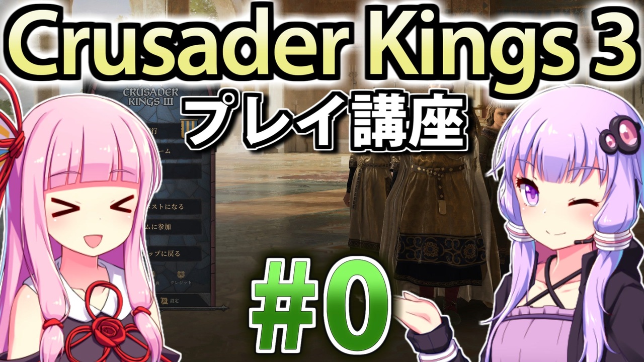 Crusader Kings III (CK3) の遊び方を初心者向けに解説していくプレイ動画。<br>第0回はCK3とは?の解説から、買い方・日本語化・初心者向けプレイキャラクターまで。<br><br>プレイ環境 : CK3 Ver1.2.2<br>CK3日本語化MOD <a href="https://steamcommunity.com/sharedfiles/filedetails/?id=2217567218" target="_blank" rel="noopener nofollow">https://steamcommunity.com/sharedfiles/filedetails/?id=2217567218</a><br>CK3日本語フォント <a href="https://steamcommunity.com/sharedfiles/filedetails/?id=2222286050" target="_blank" rel="noopener nofollow">https://steamcommunity.com/sharedfiles/filedetails/?id=2222286050</a><br><br>前 : ないよ <-> 次 : (<a href="https://www.nicovideo.jp/watch/sm38196923" class="watch">sm38196923</a>)<br>このシリーズのリンク: <a href="https://www.nicovideo.jp/series/191974" target="_blank" rel="noopener">series/191974</a><br />HoI4プレイ講座 → (<a href="https://www.nicovideo.jp/mylist/62136132" target="_blank" rel="noopener">mylist/62136132</a>)<br>EU4プレイ講座→(<a href="https://www.nicovideo.jp/mylist/61049948" target="_blank" rel="noopener">mylist/61049948</a>)<br>CK3プレイ講座→(<a href="https://www.nicovideo.jp/series/191974" target="_blank" rel="noopener">series/191974</a>)<br>Stellarisプレイ講座→(<a href="https://www.nicovideo.jp/series/263583" target="_blank" rel="noopener">series/263583</a>)<br>Vic3プレイ講座→(<a href="https://www.nicovideo.jp/series/364690" target="_blank" rel="noopener">series/364690</a>)<br>赤いシムシティ実況動画 → (<a href="https://www.nicovideo.jp/series/8074" target="_blank" rel="noopener">series/8074</a>)<br>太閤立志伝5 DX実況動画→ (<a href="https://www.nicovideo.jp/series/323444" target="_blank" rel="noopener">series/323444</a>)<br>信長の野望 小田家プレイ動画 → (<a href="https://www.nicovideo.jp/series/353641" target="_blank" rel="noopener">series/353641</a>)<br>紲星あかりF1参戦記→(<a href="https://www.nicovideo.jp/series/222744" target="_blank" rel="noopener">series/222744</a>)<br>あかねとあかりのソビエト国境警備隊!→ (<a href="https://www.nicovideo.jp/series/394983" target="_blank" rel="noopener">series/394983</a>)<br>Cities: Skylines2都市開発プレイ動画 → (<a href="https://www.nicovideo.jp/series/436779" target="_blank" rel="noopener">series/436779</a>)<br>Manor Lords村作りプレイ動画 → (<a href="https://www.nicovideo.jp/series/468306" target="_blank" rel="noopener">series/468306</a>)<br>全動画投稿リスト (<a href="https://www.nicovideo.jp/user/77964272" target="_blank" rel="noopener">user/77964272</a>)