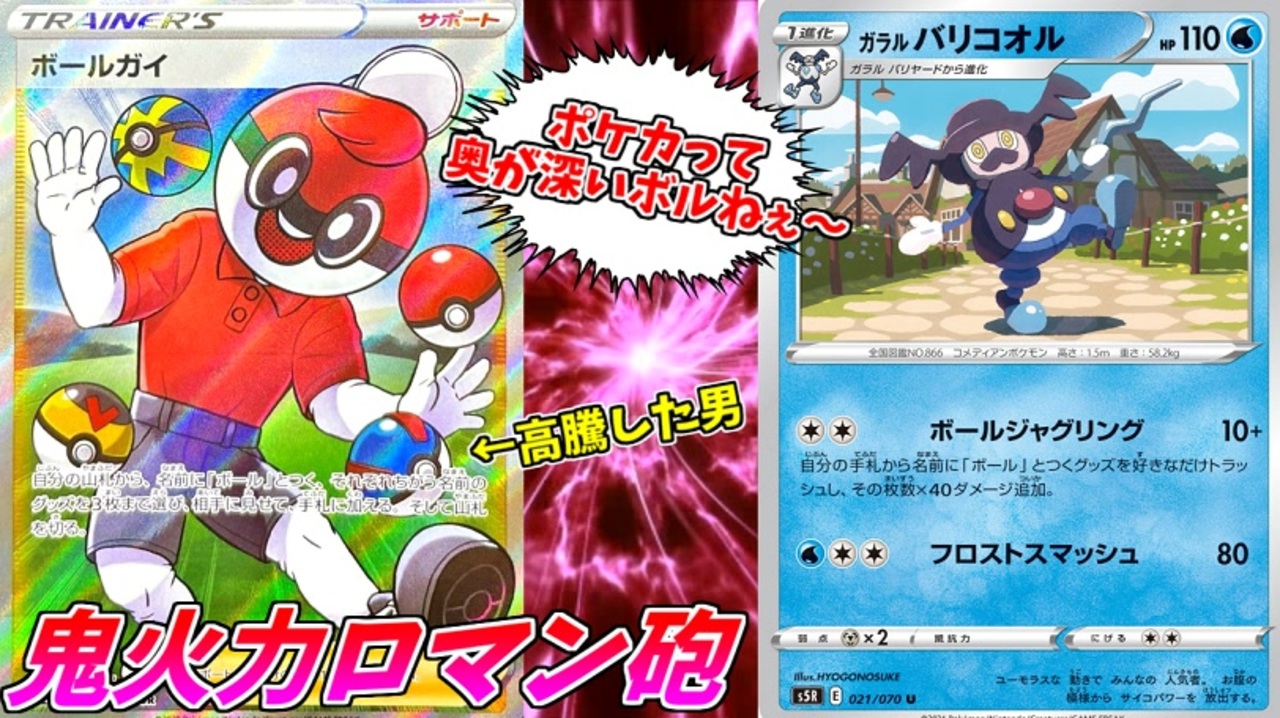 ボールガイを高騰させたガラルバリコオルさんとの最強タッグ!!<br><br>前→<a href="https://www.nicovideo.jp/watch/sm38185674" class="watch">sm38185674</a> 次→<a href="https://www.nicovideo.jp/watch/sm38247663" class="watch">sm38247663</a><br><br>とりっぴぃ→<a href="https://www.nicovideo.jp/mylist/46706915" target="_blank" rel="noopener">mylist/46706915</a><br><br>【ポケカマイリス】<a href="https://www.nicovideo.jp/mylist/63573601" target="_blank" rel="noopener">mylist/63573601</a><br><span style="color: #000000;">【チャンネル】</span><span style="color: #006699; font-size: 14px;"><a href="https://ch.nicovideo.jp/ainosensi" target="_blank" rel="noopener">ch.nicovideo.jp/ainosensi</a></span><br><span style="color: #000000; font-size: 14px;">【その他投稿作品】</span><span style="color: #006699; font-size: 14px;"><a href="https://www.nicovideo.jp/mylist/34427287" target="_blank" rel="noopener">mylist/34427287</a></span><span style="color: #000000; font-size: 14px;"> 【Twitter】@ainosensi2</span><br><span style="color: #14171a; font-size: 14px;">【YOUTUBE】</span><span style="color: #006699; font-size: 14px;"><a href="http://goo.gl/OMphlA" target="_blank" rel="noopener nofollow">http://goo.gl/OMphlA</a></span>