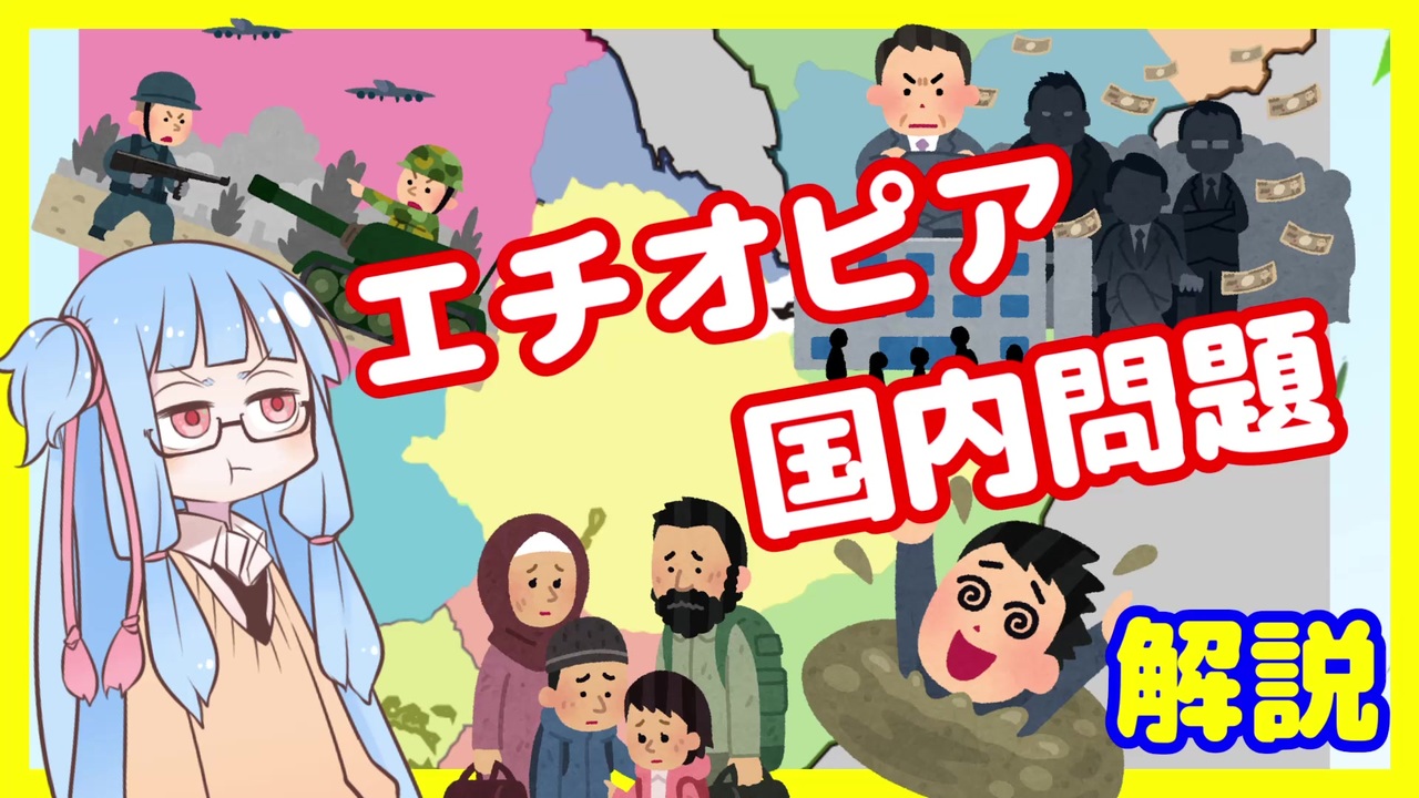 投稿が遅れた理由<br><br>年始からマリ解説は重すぎたかな → せや、アフリカの奇跡ボツワナを紹介したろ!<br>→やる夫スレ動画の壁が高すぎる → 最近調べ始めていたエチオピア問題に変更したろ!<br>→思った以上に問題が根深すぎて時間かかりそうだな・・・<br>→職場でコロナの濃厚接触者判定され、やる気ゲージが行方不明(なお陰性)<br><br />※この動画ではA.I.VOICEを使っていますが、普及具合を鑑みてタグにはVOICEROID解説を併記させていただいております。<br><br>世界情勢検索ボット作成中(note):<a href="https://note.com/todo_1582/n/n3b76a6aafd0d" target="_blank" rel="noopener nofollow">https://note.com/todo_1582/n/n3b76a6aafd0d</a><br>ニコニコチャンネル:<a href="https://ch.nicovideo.jp/to-do" target="_blank" rel="noopener nofollow">https://ch.nicovideo.jp/to-do</a><br>現代史解説 <a href="https://www.nicovideo.jp/series/166058" target="_blank" rel="noopener">series/166058</a><br>世界情勢振り返り <a href="https://www.nicovideo.jp/series/352199" target="_blank" rel="noopener">series/352199</a><br>ムスリみの違い解説 <a href="https://www.nicovideo.jp/series/352200" target="_blank" rel="noopener">series/352200</a><br>マイリスト <a href="https://www.nicovideo.jp/mylist/69599837" target="_blank" rel="noopener">mylist/69599837</a><br>Youtube:<a href="https://youtube.com/playlist?list=PL6pjlejdhtK6JxdZZp_3ZqAGmDghvdfu0" target="_blank" rel="noopener nofollow">https://youtube.com/playlist?list=PL6pjlejdhtK6JxdZZp_3ZqAGmDghvdfu0</a>