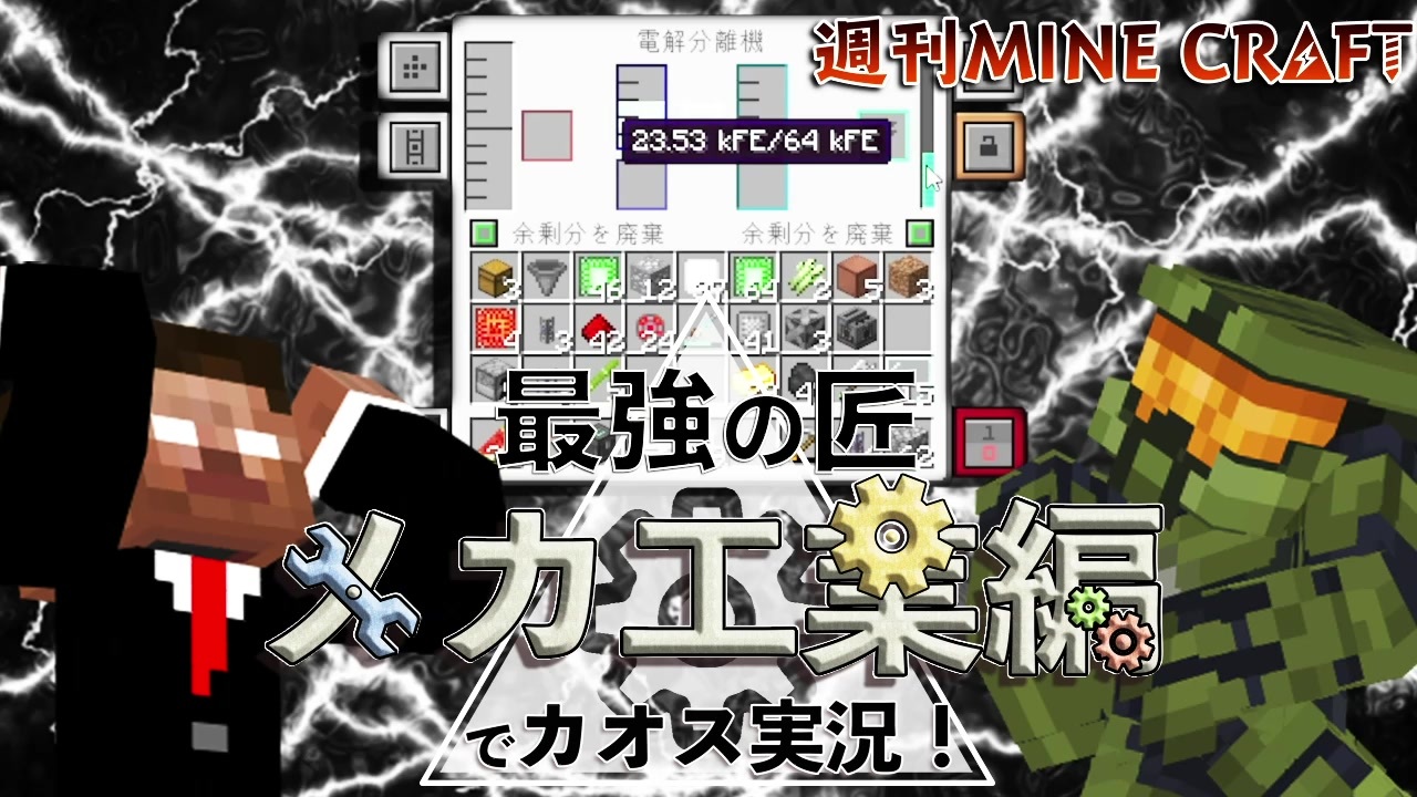 全世界のみんな、最強の匠【メカ工業編】ってか週刊マインクラフト!!<br>工業系といえばMSSP!MSSPといえば工業系(主に地形破壊)<br>と言われる我々MSSPが、またまた工業系MODに挑戦!<br>今回はMekanismというMODを導入し、近代文明に挑戦していきますぞ!<br><br>★FB777→黒服。目標はテム・レイ。<br>★あろま→マスターチーフ。目標はボルガ博士。<br>★EOHEOH→素スティーブ。目標は風見博士。<br>★KIKKUN-MK-Ⅱ→ヨッシー。目標はザボエラ。<br><br>今回の導入MOD(1.16.4)<br>Mekanism→<a href="https://aidancbrady.com/mekanism/download/" target="_blank" rel="noopener nofollow">https://aidancbrady.com/mekanism/download/</a><br>Just Enough Items<br>Xaeros_Minimap<br><br>高画質はこちら→<a href="https://youtu.be/56IJLRLhVvA" target="_blank" rel="noopener nofollow">https://youtu.be/56IJLRLhVvA</a><br><br>前回→<a href="https://www.nicovideo.jp/watch/sm38172418" class="watch">sm38172418</a> 次回→<a href="https://www.nicovideo.jp/watch/sm38241953" class="watch">sm38241953</a><br>マイクラマイリス→<a href="https://www.nicovideo.jp/mylist/34003718" target="_blank" rel="noopener">mylist/34003718</a><br><br />▼Limited Abyss History 2026年MSSP音楽ライブ情報も!<br>16周年グッズや16周年のMSSPの最新情報一覧はこちらから!<br>MSSPオフィシャルサイト<br><a href="https://mssp-web.com/" target="_blank" rel="noopener nofollow">https://mssp-web.com/</a><br><br>▼MSSP最新ミニアルバム『サンダーボルト』リリース中!!<br>MV <a href="https://youtu.be/6fNvrd0qMfg" target="_blank" rel="noopener nofollow">https://youtu.be/6fNvrd0qMfg</a><br><a href="https://mssp-web.com/discography/kp7f4ff2ntm/" target="_blank" rel="noopener nofollow">https://mssp-web.com/discography/kp7f4ff2ntm/</a><br><br>▼15年分のMSSP音源&新曲が詰まった超ウルトラベスト盤<br>『M.S.S.Platinum BEST』発売中!オンライン販売はこちら↓<br><a href="https://ipshoten-online.com/products/ipst-0031" target="_blank" rel="noopener nofollow">https://ipshoten-online.com/products/ipst-0031</a><br><br>▼↓↓↓M.S.S Projectの動画の切り抜き動画公開に関しての<br>ガイドラインは此方のブロマガをご覧ください!↓↓↓<br><a href="https://ch.nicovideo.jp/mssp/blomaga/ar2087761" target="_blank" rel="noopener nofollow">https://ch.nicovideo.jp/mssp/blomaga/ar2087761</a><br><br>▼MSSPオフィシャルサイト<br><a href="https://mssp-web.com/" target="_blank" rel="noopener nofollow">https://mssp-web.com/</a><br>▼MSSPライブサイト<br><a href="https://live.mssp-web.com/2025w/" target="_blank" rel="noopener nofollow">https://live.mssp-web.com/2025w/</a><br>▼MSSPグッズショップサイト<br><a href="https://official-goods-store.jp/mssproject/" target="_blank" rel="noopener nofollow">https://official-goods-store.jp/mssproject/</a><br>▼Youtube M.S.S Project ライブ(実写、生放送)<br><a href="https://www.youtube.com/c/NewMSSP" target="_blank" rel="noopener nofollow">https://www.youtube.com/c/NewMSSP</a><br>▼Youtube M.S.S Project ゲーム<br><a href="https://www.youtube.com/@MSSP" target="_blank" rel="noopener nofollow">https://www.youtube.com/@MSSP</a><br>▼ニコニコ動画 M.S.S Projectチャンネル<br><a href="http://ch.nicovideo.jp/mssp/blomaga" target="_blank" rel="noopener nofollow">http://ch.nicovideo.jp/mssp/blomaga</a><br>▼ニコニコM.S.S Project実況動画 <br><a href="http://www.nicovideo.jp/mylist/14610850" target="_blank" rel="noopener nofollow">http://www.nicovideo.jp/mylist/14610850</a>