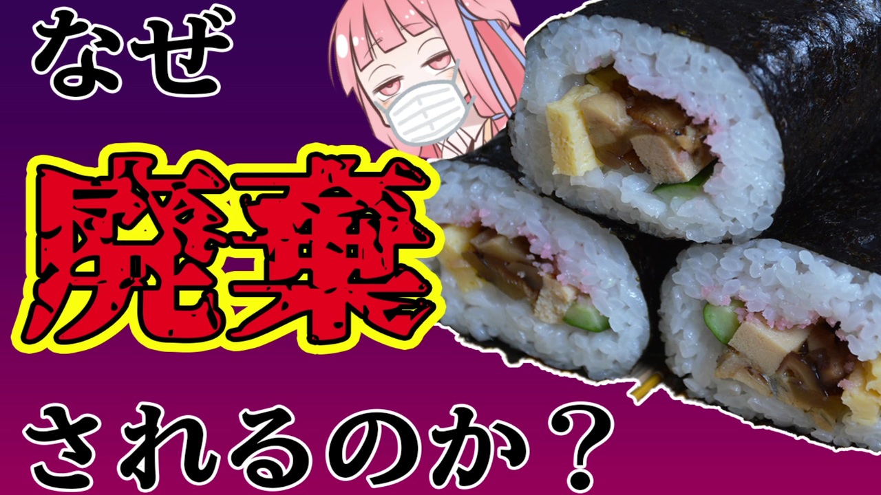 節分のこの時期、毎度話題になるのが<br>大量に廃棄される恵方巻問題です。<br><br>今回はコンビニはなぜ廃棄されるとわかっている<br>恵方巻きを大量に作るのかを解説しました。<br><br><a href="https://www.nicovideo.jp/mylist/73198447" target="_blank" rel="noopener">mylist/73198447</a><br><br>前回:【裏側】食品工場できつい時期ランキングベスト3【VOICEROID解説】(<a href="https://www.nicovideo.jp/watch/sm38048324" class="watch">sm38048324</a>)<br><br>今回のブログ記事:<a href="https://acerolalog.com/haiki/" target="_blank" rel="noopener nofollow">https://acerolalog.com/haiki/</a><br><br><br>メインのボイロ実況もよろしく<br>ふしぎのぼうしパート1→<a href="https://www.nicovideo.jp/watch/sm37547602" class="watch">sm37547602</a><br>ふしぎのぼうしリスト→<a href="https://www.nicovideo.jp/mylist/69580685" target="_blank" rel="noopener">mylist/69580685</a><br><br><br /><span style="color: #ff0000; font-size: 24px;"><strong>釧路を紹介するブログ始めました</strong></span>:<a href="https://946de2100.com" target="_blank" rel="noopener nofollow">https://946de2100.com</a><br><br><span style="color: #ff0000; font-size: 16px;"><strong>●おススメ動画:</strong></span><span style="color: #ff0000; font-size: 18px;"><strong>【歴史解説】かつて 釧路を支配していたのは佐賀だった ~釧路元町の始まりと佐野孫右衛門の盛衰~</strong></span><br><br><a href="https://www.nicovideo.jp/watch/sm44267722" class="watch">sm44267722</a><br><br><br><span style="color: #ff0000; font-size: 18px;"><strong>●YouTubeチャンネルも登録よろしくお願いします</strong></span><br><strong>釧路チャンネル <a href="https://www.youtube.com/@znd-kaisetu" target="_blank" rel="noopener nofollow">https://www.youtube.com/@znd-kaisetu</a></strong><br>恋結シラリカソロチャンネル <a href="https://www.youtube.com/@enmusubi-shirarika" target="_blank" rel="noopener nofollow">https://www.youtube.com/@enmusubi-shirarika</a><br><br><br>ほしいものリスト <a href="https://www.amazon.jp/hz/wishlist/ls/2OUUB1JQSRUWG?ref_=wl_share" target="_blank" rel="noopener nofollow">https://www.amazon.jp/hz/wishlist/ls/2OUUB1JQSRUWG?ref_=wl_share</a><br>クリエイターサポート<a href="https://creator-support.nicovideo.jp/registration/116665199" target="_blank" rel="noopener nofollow">https://creator-support.nicovideo.jp/registration/116665199</a>