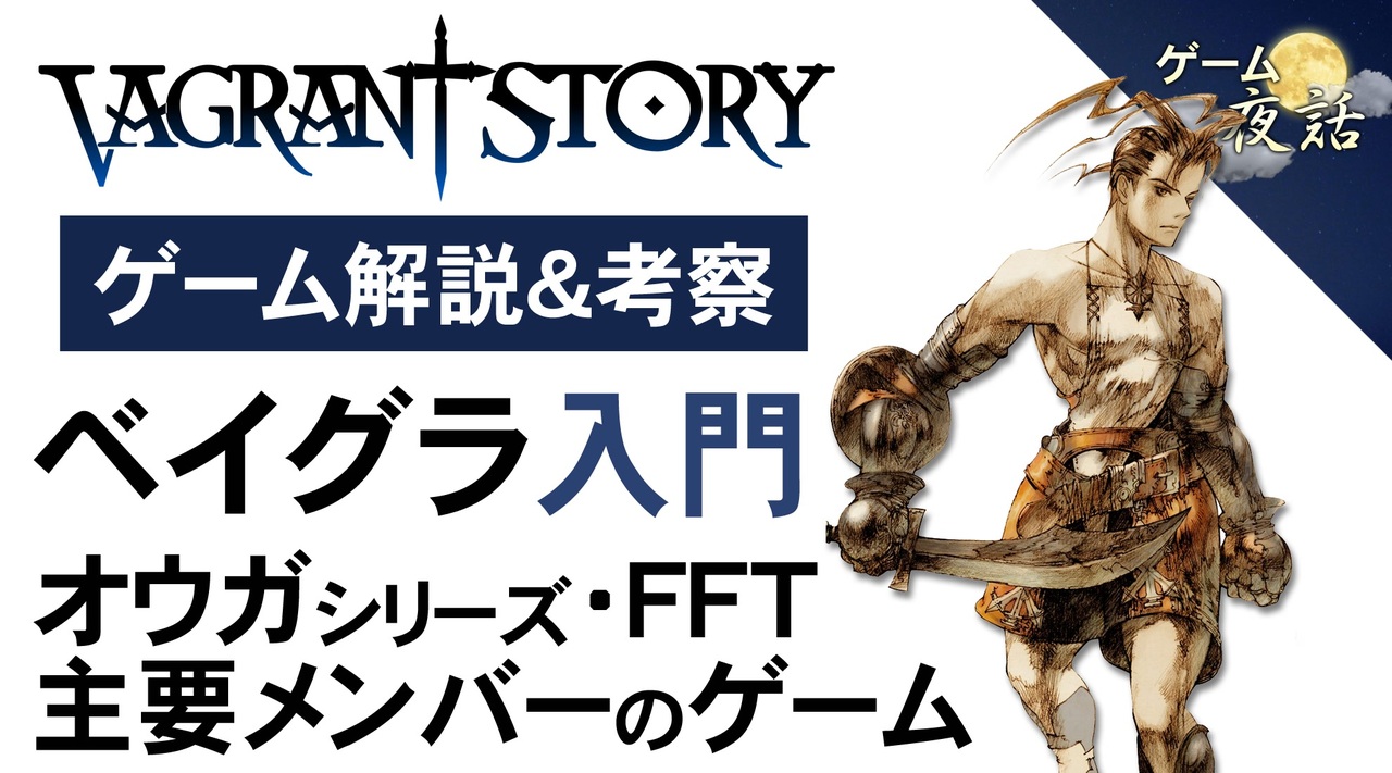 過去動画を宣伝して下さった皆さん、ありがとうございましたm(__)m<br>毎回ひとつのゲームを取り上げ、3つのテーマから解説&考察します。<br>【前編】は毎月1日・15日更新、【後編】は制作状況に応じて更新致します。<br><br><span style="color: #ff0000;"><strong>今回、動画の構成を示す、画面下のタイムラインの設定を忘れてしまいました<br>申し訳ございませんm(__)m<br>【誤字の訂正です】×物理体制 ○物理耐性</strong></span><br><br><strong>第92回「ベイグラントストーリー」</strong><br>■中編:<a href="https://www.nicovideo.jp/watch/sm38268243" class="watch">sm38268243</a><br>■後編:<a href="https://www.nicovideo.jp/watch/sm38273994" class="watch">sm38273994</a><br><br>▼関連動画<br><strong>第52回「ファイナルファンタジータクティクス」</strong><br>前編:<a href="https://www.nicovideo.jp/watch/sm34976469" class="watch">sm34976469</a>(ゲームシステムの解説と考察)<br>後編:<a href="https://www.nicovideo.jp/watch/sm35019889" class="watch">sm35019889</a>(ストーリーの考察 正しさとは何か?)<br><br><strong>第3回「タクティクスオウガ」</strong><br>前編:<a href="https://www.nicovideo.jp/watch/sm29953630" class="watch">sm29953630</a>(ゲームシステムの解説と考察)<br>後編:<a href="https://www.nicovideo.jp/watch/sm29980526" class="watch">sm29980526</a>(ストーリーの考察 姉の選択肢、父親の遺言など)<br><br>■youtubeはこちら <a href="https://youtu.be/8YuGAFo7ARg" target="_blank" rel="noopener nofollow">https://youtu.be/8YuGAFo7ARg</a><br>■告知用のツイッター <a href="https://twitter.com/gameyawa" target="_blank" rel="noopener nofollow">https://twitter.com/gameyawa</a><br><br>■第91回「メタルギアソリッド3 スネークイーター」<br>前編:<a href="https://www.nicovideo.jp/watch/sm38123991" class="watch">sm38123991</a> 中編:<a href="https://www.nicovideo.jp/watch/sm38148842" class="watch">sm38148842</a> 後編:<a href="https://www.nicovideo.jp/watch/sm38169344" class="watch">sm38169344</a><br>■第93回「十三機兵防衛圏」<br>前編:<a href="https://www.nicovideo.jp/watch/sm38284861" class="watch">sm38284861</a> 後編:※ただいま作成中ですm(__)m<br><br>■ゲーム夜話マイリスト <a href="https://www.nicovideo.jp/mylist/56973971" target="_blank" rel="noopener">mylist/56973971</a><br><span style="color: #000000; font-size: 13px;">■ゲーム夜話特別編マイリスト <a href="https://www.nicovideo.jp/mylist/65104419" target="_blank" rel="noopener">mylist/65104419</a><br><br>■ゲームジャンル別マイリスト</span><br>・RPG <a href="https://www.nicovideo.jp/mylist/69852172" target="_blank" rel="noopener">mylist/69852172</a><br>・アクション <a href="https://www.nicovideo.jp/mylist/69852179" target="_blank" rel="noopener">mylist/69852179</a><br>・アクションRPG <a href="https://www.nicovideo.jp/mylist/69852177" target="_blank" rel="noopener">mylist/69852177</a><br>・アドベンチャー <a href="https://www.nicovideo.jp/mylist/69852182" target="_blank" rel="noopener">mylist/69852182</a><br>・アクションアドベンチャー <a href="https://www.nicovideo.jp/mylist/69852188" target="_blank" rel="noopener">mylist/69852188</a><br>・シミュレーション <a href="https://www.nicovideo.jp/mylist/69852189" target="_blank" rel="noopener">mylist/69852189</a><br>・ホラー <a href="https://www.nicovideo.jp/mylist/69852194" target="_blank" rel="noopener">mylist/69852194</a><br>・サウンドノベル <a href="https://www.nicovideo.jp/mylist/69852197" target="_blank" rel="noopener">mylist/69852197</a>