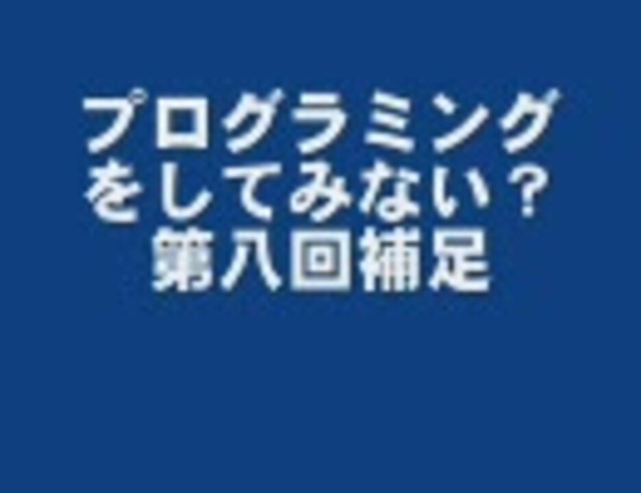 第八回(<a href="https://www.nicovideo.jp/watch/sm3789393" class="watch">sm3789393</a>)があまりにもひどいので、補足動画を作成しました。ごめんなさい。<br />次(<a href="https://www.nicovideo.jp/watch/sm3865617" class="watch">sm3865617</a>) / <a href="https://www.nicovideo.jp/mylist/7143440" target="_blank" rel="noopener">mylist/7143440</a><br /><br />■プログラムダウンロード:<a href="http://thcc.s13.xrea.com/" target="_blank" rel="noopener nofollow">http://thcc.s13.xrea.com/</a><br /><br />