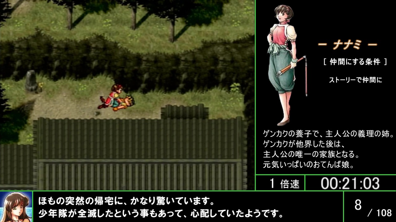 初投稿です。<br>プロローグ~キャロの街まで<br><br>・計測開始 → 前作コンバート選択直後<br>・計測終了 → 最後のメッセージウィンドウが消えた瞬間<br>・連射機使用<br>・バグ技使用<br><br>次 → <a href="https://www.nicovideo.jp/watch/sm38257190" class="watch">sm38257190</a><br>幻想水滸伝Ⅱ 108星ベストED RTA <a href="https://www.nicovideo.jp/mylist/70493901" target="_blank" rel="noopener">mylist/70493901</a><br><br>リマスター版で縛りプレイもやっています<br>Part1 → <a href="https://www.nicovideo.jp/watch/sm44892554" class="watch">sm44892554</a>