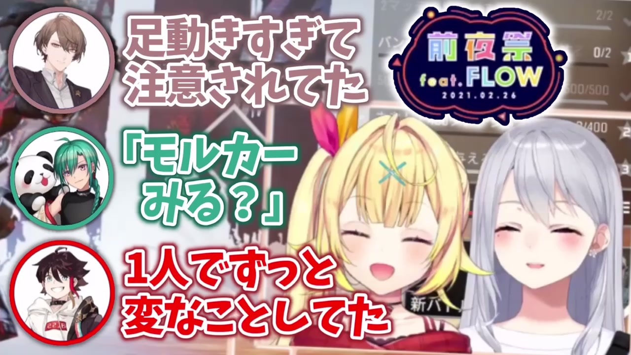 <a href="#" class="seekTime" data-seekTime="1:10" onclick="seekNicoPlayer('#1:10'); return false;">#1:10</a> みんなに馴染んでたけどでろーんは苦手意識がある剣持<br><a href="#" class="seekTime" data-seekTime="3:23" onclick="seekNicoPlayer('#3:23'); return false;">#3:23</a> モルカー緑仙<br><a href="#" class="seekTime" data-seekTime="4:03" onclick="seekNicoPlayer('#4:03'); return false;">#4:03</a> ステップやジャンプが1つ1つかわいい星川<br><a href="#" class="seekTime" data-seekTime="5:10" onclick="seekNicoPlayer('#5:10'); return false;">#5:10</a> ずっと動いてたうるさい社長<br><a href="#" class="seekTime" data-seekTime="5:22" onclick="seekNicoPlayer('#5:22'); return false;">#5:22</a> 1人でずっと変なことしてた明那<br><br>使用動画<br>【APEX】初めましtてあそbびますドキドキしてまs【星川サラ/にじさんじ/樋口楓】<br><a href="https://youtu.be/QNSnRlPBivU" target="_blank" rel="noopener nofollow">https://youtu.be/QNSnRlPBivU</a><br><br>【APEX】お弁当くれた優しい人と撃ちあい【にじさんじ / 樋口楓 / 星川サラ】<br><a href="https://youtu.be/bwKQjIhaQ6s" target="_blank" rel="noopener nofollow">https://youtu.be/bwKQjIhaQ6s</a><br><br /><br>---<br><br>ライバーさん、または多数の方が不快に感じる可能性があるコメントをした方はNGとさせていただきます。<br><br>Twitter @c0rn81