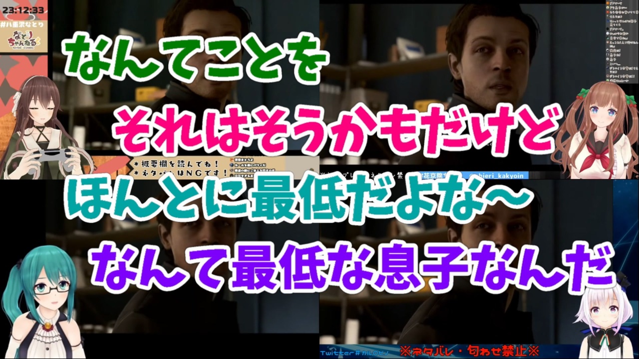 アイドル部四名のプレイするドラ息子シーンを並べてみました。<br>難しい選択です。<br><br>■配信アーカイブ<br>▶八重沢なとり<br>【Detroit: Become Human】自分の選択肢を信じて幸せな道へ...!!!!【初プレイ/ゲーム実況】八重沢なとり VTuber<br><a href="https://www.youtube.com/watch?v=HaGXXkSCfO4" target="_blank" rel="noopener nofollow">https://www.youtube.com/watch?v=HaGXXkSCfO4</a><br>▶花京院ちえり<br>【デトロイト/初見】私の選択 前編【Detroit: Become Human】【花京院ちえり】<br><a href="https://www.youtube.com/watch?v=a8yfIRsDf_w" target="_blank" rel="noopener nofollow">https://www.youtube.com/watch?v=a8yfIRsDf_w</a><br>▶神楽すず<br>【Detroit: Become Human】全滅させたけど本気で全員生存を目指す2周目Detroit #02<br><a href="https://www.youtube.com/watch?v=bPoDEmgmhpQ" target="_blank" rel="noopener nofollow">https://www.youtube.com/watch?v=bPoDEmgmhpQ</a><br>▶カルロ・ピノ<br>【DETROIT#2】変異体とは?【初見プレイ】<br><a href="https://www.youtube.com/watch?v=J79VPHrlpx8&t=1794s" target="_blank" rel="noopener nofollow">https://www.youtube.com/watch?v=J79VPHrlpx8&t=1794s</a><br>