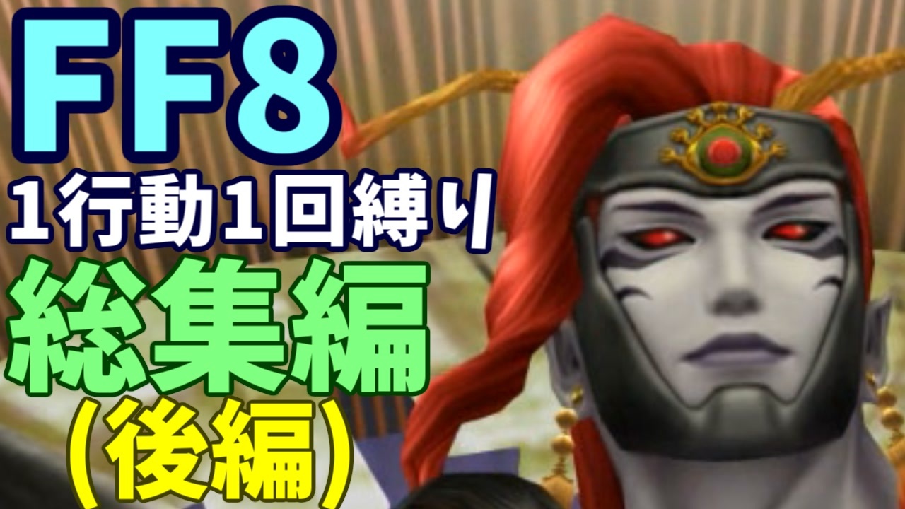 1行動1回縛り(<a href="https://www.nicovideo.jp/mylist/68577394" target="_blank" rel="noopener">mylist/68577394</a>)の全行動のみを収録した総集編の後編です。<br><br>総集編前編:<a href="https://www.nicovideo.jp/watch/sm38258350" class="watch">sm38258350</a> <br>part1:<a href="https://www.nicovideo.jp/watch/sm36982623" class="watch">sm36982623</a><br><br>Copyright (C) 1999, 2019 SQUARE ENIX CO., LTD. All Rights Reserved.<br><br><span style="color: #0000ff; font-size: 18px;">【FF8】最弱カード縛りでCC団撃破:</span><span style="font-size: 18px;"><a href="https://www.nicovideo.jp/watch/sm37937589" class="watch">sm37937589</a></span><br><br><strong>【マイリスト】</strong><br><a href="https://www.nicovideo.jp/mylist/68577394" target="_blank" rel="noopener">mylist/68577394</a><br><br><strong>【他のシリーズ】</strong><br>◆石橋を叩いてFF8:<span style="color: #006699; font-size: 14px;"><a href="https://www.nicovideo.jp/watch/sm34318717" class="watch">sm34318717</a></span><br><span style="color: #000000; font-size: 13px;">◆視聴者が縛ってFF10:</span><a href="https://www.nicovideo.jp/watch/sm36581317" class="watch">sm36581317</a><br>◆<span style="color: #001835;">FF7英字・カタカナ禁止で低レベルクリア</span>:<a href="https://www.nicovideo.jp/watch/sm32356994" class="watch">sm32356994</a><br>◆FF8最少コマンド入力回数クリアに挑戦:<a href="https://www.nicovideo.jp/watch/sm29792055" class="watch">sm29792055</a><br>◆FF8ノージャンクンション1人旅+α:<a href="https://www.nicovideo.jp/watch/sm27238226" class="watch">sm27238226</a><br>◆石橋を叩いてFF4:<a href="https://www.nicovideo.jp/watch/sm25971042" class="watch">sm25971042</a><br><br><strong>【youtube版】</strong><br><a href="https://youtu.be/tfNajPzDcB0" target="_blank" rel="noopener nofollow">https://youtu.be/tfNajPzDcB0</a> (part1)<br /><br><span style="font-size: 13px;"><strong>【コミュニティ】</strong></span><br>co3746864(たまに生放送してます)<br><br><span style="font-size: 13px;"><strong>【twitter】</strong></span><br><a href="http://twitter.com/shelfall" target="_blank" rel="noopener nofollow">http://twitter.com/shelfall</a><br><br><span style="font-size: 13px;"><strong>【ブログ】</strong></span><br><a href="https://shel-kimura.com/" target="_blank" rel="noopener nofollow">https://shel-kimura.com/</a>