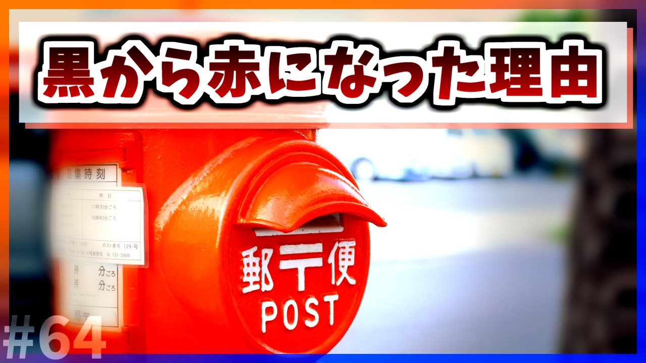 今日の豆知識は「ポストの色が黒色から赤色になった理由」です。<br>街中で見かける郵便ポスト、ほとんど赤色ですがなぜ赤色になったのでしょうか。<br><br><span style="font-size: 16px;"><strong>「いいね!」に追加の豆知識書いてます。</strong></span><br><br>今日の豆知識シリーズでは、毎日、様々なジャンルの豆知識を紹介していきます。<br>このシリーズは音声のみで、ラジオ感覚で聞くこともできます。<br>基本毎日投稿です!<br><br><br>コメントやいいね、マイリストなどしていただけるとモチベにつながるのでよければお願いします。<br><br>前【<a href="https://www.nicovideo.jp/watch/sm38253396" class="watch">sm38253396</a>】<br>次【<a href="https://www.nicovideo.jp/watch/sm38263399" class="watch">sm38263399</a>】<br><br /><br><span style="font-size: 16px;"><strong>各シリーズPart1リンク</strong></span><br>【海外の気になるQ&A】<br><a href="https://www.nicovideo.jp/watch/sm42996236" class="watch">sm42996236</a><br>【今日の豆知識】<br><a href="https://www.nicovideo.jp/watch/sm38740531" class="watch">sm38740531</a><br>【テクノロジーの歴史】<br><a href="https://www.nicovideo.jp/watch/sm37218295" class="watch">sm37218295</a><br><br>▶ Youtube<br><a href="https://www.youtube.com/channel/UCgb_Wn-ZUdVM3MTLiVHhcXQ?sub_confirmation=1" target="_blank" rel="noopener nofollow">https://www.youtube.com/channel/UCgb_Wn-ZUdVM3MTLiVHhcXQ?sub_confirmation=1</a><br>▶ Twitter<br><a href="https://twitter.com/RayKemo" target="_blank" rel="noopener nofollow">https://twitter.com/RayKemo</a>