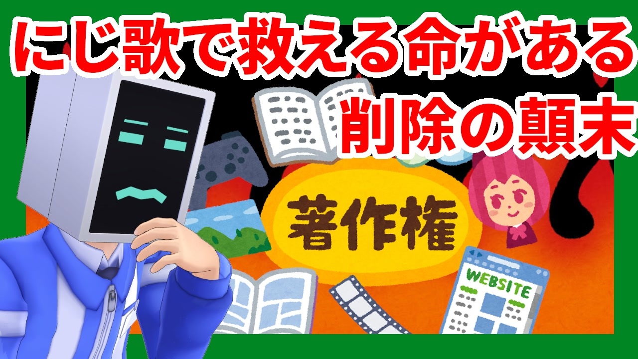 「にじ歌で救える命がある」という歌ってみた切り抜きランキングchが、紆余曲折を経てチャンネル削除となった顛末をまとめまてみました。<br><br>ノーカット版(YouTube):<a href="https://www.youtube.com/watch?v=h5fUg8_IqPg" target="_blank" rel="noopener nofollow">https://www.youtube.com/watch?v=h5fUg8_IqPg</a><br><br>Twitter:<a href="https://twitter.com/vcomikasa" target="_blank" rel="noopener nofollow">https://twitter.com/vcomikasa</a><br>マシュマロ:<a href="https://marshmallow-qa.com/vcomikasa" target="_blank" rel="noopener nofollow">https://marshmallow-qa.com/vcomikasa</a><br><br>画像:<br>いらすとや様:<a href="https://www.irasutoya.com/" target="_blank" rel="noopener nofollow">https://www.irasutoya.com/</a><br><br>待機画面<br>すておこさん様:<a href="https://twitter.com/suteok0" target="_blank" rel="noopener nofollow">https://twitter.com/suteok0</a><br><br>終了画面<br>ぶんどき様:<a href="https://twitter.com/_bunndoki_" target="_blank" rel="noopener nofollow">https://twitter.com/_bunndoki_</a><br><br>BGM:<br>なぞなぞブルース/shimtone様:<a href="https://dova-s.jp/bgm/play11800.html" target="_blank" rel="noopener nofollow">https://dova-s.jp/bgm/play11800.html</a><br><br>効果音:<br>効果音ラボ様:<a href="https://soundeffect-lab.info/" target="_blank" rel="noopener nofollow">https://soundeffect-lab.info/</a>