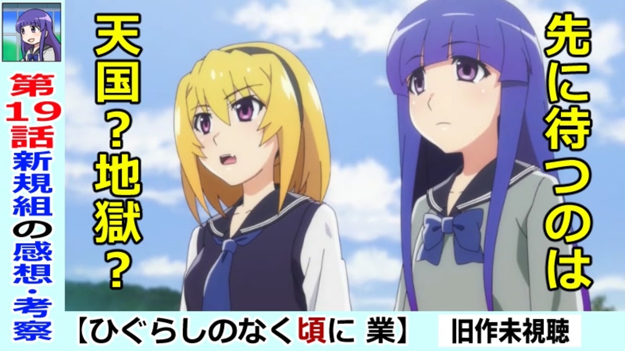 サムネがネタバレではという指摘がありましたので、<br>来週までサムネを変更しておきます。<br><br><<<コメントの際の注意事項>>><br>毎週のアニメのみを辿って感想・考察を出していきたいと思います。<br>新規視聴者さんのためにもネタバレコメントはご遠慮ください。<br>旧作を用いた描写比較、設定解説、出ていない用語の使用、注目点の示唆なども同様です。<br>アニメ業視聴後に、新規ファンが旧作を楽しむ余地を残してあげておいてください^^<br><br><<コンセプト>><br>ネタバレが苦手な人でも楽しめる動画を目指しています!<br>皆さんの感想などもお聞かせいただけると嬉しいです!<br>新アニメとしての新規視点での考察なども歓迎です!<br><br>一緒に追いかけながらアニメを楽しみましょう!<br>↓【Youtubeでチャンネル登録】次回もニコニコで動画を出せるとは限りません<br><a href="https://www.youtube.com/channel/UC3i6fY7gwjIo8HJo7G_N4mA?sub_confirmation=1" target="_blank" rel="noopener nofollow">https://www.youtube.com/channel/UC3i6fY7gwjIo8HJo7G_N4mA?sub_confirmation=1</a><br><br>【ツイッター】告知や面白いものの共有用<br><a href="https://twitter.com/toori0303" target="_blank" rel="noopener nofollow">https://twitter.com/toori0303</a><br>【pixiv】動画用に描いた絵や漫画のまとめ等<br><a href="https://www.pixiv.net/users/9142671" target="_blank" rel="noopener nofollow">https://www.pixiv.net/users/9142671</a><br>【欲しい物リスト】送って頂いた原作書籍はアニメに絡めて動画を出せたらと思っています。<br><a href="https://www.amazon.jp/hz/wishlist/ls/2KZ6H6K2WSG4Z?ref_=wl_share" target="_blank" rel="noopener nofollow">https://www.amazon.jp/hz/wishlist/ls/2KZ6H6K2WSG4Z?ref_=wl_share</a><br>【質問箱】匿名で質問したいという方へ<br><a href="https://marshmallow-qa.com/toori0303" target="_blank" rel="noopener nofollow">https://marshmallow-qa.com/toori0303</a><br>【ブログ】アニメを見て動画作成用に使った情報をまとめています<br><a href="http://tooltoyama.livedoor.blog/" target="_blank" rel="noopener nofollow">http://tooltoyama.livedoor.blog/</a><br><br><br>公式HP<br><a href="https://higurashianime.com/" target="_blank" rel="noopener nofollow">https://higurashianime.com/</a><br><br>