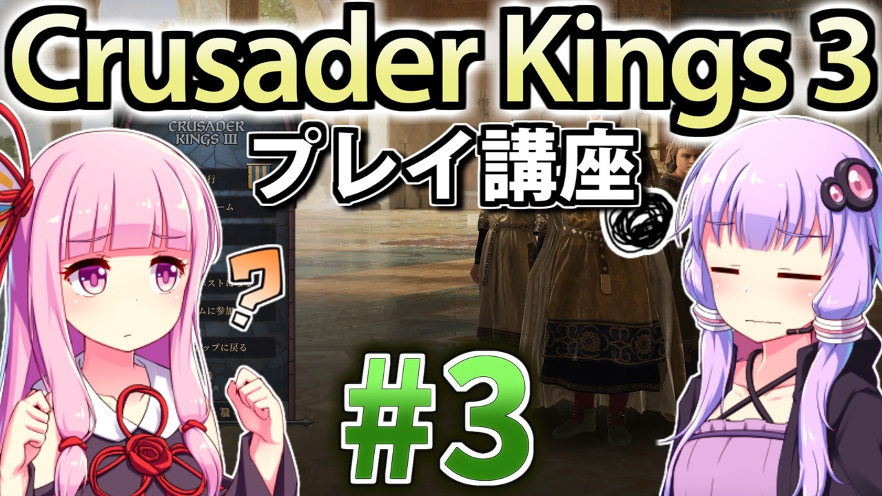 Crusader Kings III (CK3) の遊び方を初心者向けに解説していくプレイ動画。<br>第3回は内政。評議員についてと建築物の建て方など。<br><br>プレイ環境 : CK3 Ver1.2.2<br>CK3日本語化MOD <a href="https://steamcommunity.com/sharedfiles/filedetails/?id=2217567218" target="_blank" rel="noopener nofollow">https://steamcommunity.com/sharedfiles/filedetails/?id=2217567218</a><br>CK3日本語フォント <a href="https://steamcommunity.com/sharedfiles/filedetails/?id=2222286050" target="_blank" rel="noopener nofollow">https://steamcommunity.com/sharedfiles/filedetails/?id=2222286050</a><br><br>前 : (<a href="https://www.nicovideo.jp/watch/sm38232439" class="watch">sm38232439</a>) <-> 次 : (<a href="https://www.nicovideo.jp/watch/sm38340068" class="watch">sm38340068</a>)<br>このシリーズのまとめ: <a href="https://www.nicovideo.jp/series/191974" target="_blank" rel="noopener">series/191974</a><br />HoI4プレイ講座 → (<a href="https://www.nicovideo.jp/mylist/62136132" target="_blank" rel="noopener">mylist/62136132</a>)<br>EU4プレイ講座→(<a href="https://www.nicovideo.jp/mylist/61049948" target="_blank" rel="noopener">mylist/61049948</a>)<br>CK3プレイ講座→(<a href="https://www.nicovideo.jp/series/191974" target="_blank" rel="noopener">series/191974</a>)<br>Stellarisプレイ講座→(<a href="https://www.nicovideo.jp/series/263583" target="_blank" rel="noopener">series/263583</a>)<br>Vic3プレイ講座→(<a href="https://www.nicovideo.jp/series/364690" target="_blank" rel="noopener">series/364690</a>)<br>赤いシムシティ実況動画 → (<a href="https://www.nicovideo.jp/series/8074" target="_blank" rel="noopener">series/8074</a>)<br>太閤立志伝5 DX実況動画→ (<a href="https://www.nicovideo.jp/series/323444" target="_blank" rel="noopener">series/323444</a>)<br>信長の野望 小田家プレイ動画 → (<a href="https://www.nicovideo.jp/series/353641" target="_blank" rel="noopener">series/353641</a>)<br>紲星あかりF1参戦記→(<a href="https://www.nicovideo.jp/series/222744" target="_blank" rel="noopener">series/222744</a>)<br>あかねとあかりのソビエト国境警備隊!→ (<a href="https://www.nicovideo.jp/series/394983" target="_blank" rel="noopener">series/394983</a>)<br>Cities: Skylines2都市開発プレイ動画 → (<a href="https://www.nicovideo.jp/series/436779" target="_blank" rel="noopener">series/436779</a>)<br>Manor Lords村作りプレイ動画 → (<a href="https://www.nicovideo.jp/series/468306" target="_blank" rel="noopener">series/468306</a>)<br>全動画投稿リスト (<a href="https://www.nicovideo.jp/user/77964272" target="_blank" rel="noopener">user/77964272</a>)