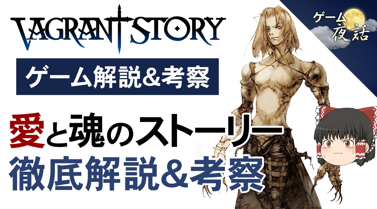 過去動画を宣伝して下さった皆さん、ありがとうございましたm(__)m<br>毎回ひとつのゲームを取り上げ、3つのテーマから解説&考察します。<br>【前編】は毎月1日・15日更新、【後編】は制作状況に応じて更新致します。<br><br>□<span style="color: #ff0000;"><strong>お詫びと訂正です<br>シドニーの背中の刺青は「血濡れの罪」ではなく<br>正しくは「血塗れの罪」です。頂いたコメントによると「血まみれ」と読むようです。<br>大変失礼いたしましたm(__)m</strong></span><br><br><strong>第92回「ベイグラントストーリー」</strong><br>■前編:<a href="https://www.nicovideo.jp/watch/sm38210725" class="watch">sm38210725</a><br>■中編:<a href="https://www.nicovideo.jp/watch/sm38268243" class="watch">sm38268243</a><br><br>▼関連動画<br><strong>第52回「ファイナルファンタジータクティクス」</strong><br>前編:<a href="https://www.nicovideo.jp/watch/sm34976469" class="watch">sm34976469</a>(ゲームシステムの解説と考察)<br>後編:<a href="https://www.nicovideo.jp/watch/sm35019889" class="watch">sm35019889</a>(ストーリーの考察 正しさとは何か?)<br><br><strong>第3回「タクティクスオウガ」</strong><br>前編:<a href="https://www.nicovideo.jp/watch/sm29953630" class="watch">sm29953630</a>(ゲームシステムの解説と考察)<br>後編:<a href="https://www.nicovideo.jp/watch/sm29980526" class="watch">sm29980526</a>(ストーリーの考察 姉の選択肢、父親の遺言など)<br><br>■youtubeはこちら <a href="https://youtu.be/sgZmgmtyqHI" target="_blank" rel="noopener nofollow">https://youtu.be/sgZmgmtyqHI</a><br>■告知用のツイッター <a href="https://twitter.com/gameyawa" target="_blank" rel="noopener nofollow">https://twitter.com/gameyawa</a><br><br>■第92回「メタルギアソリッド3 スネークイーター」<br>前編:<a href="https://www.nicovideo.jp/watch/sm38123991" class="watch">sm38123991</a> 中編:<a href="https://www.nicovideo.jp/watch/sm38148842" class="watch">sm38148842</a> 後編:<a href="https://www.nicovideo.jp/watch/sm38169344" class="watch">sm38169344</a><br>■第93回「十三機兵防衛圏」<br>前編:<a href="https://www.nicovideo.jp/watch/sm38284861" class="watch">sm38284861</a> 後編:※ただいま作成中ですm(__)m<br><br>■ゲーム夜話マイリスト <a href="https://www.nicovideo.jp/mylist/56973971" target="_blank" rel="noopener">mylist/56973971</a><br><span style="color: #000000; font-size: 13px;">■ゲーム夜話特別編マイリスト <a href="https://www.nicovideo.jp/mylist/65104419" target="_blank" rel="noopener">mylist/65104419</a><br><br>■ゲームジャンル別マイリスト</span><br>・RPG <a href="https://www.nicovideo.jp/mylist/69852172" target="_blank" rel="noopener">mylist/69852172</a><br>・アクション <a href="https://www.nicovideo.jp/mylist/69852179" target="_blank" rel="noopener">mylist/69852179</a><br>・アクションRPG <a href="https://www.nicovideo.jp/mylist/69852177" target="_blank" rel="noopener">mylist/69852177</a><br>・アドベンチャー <a href="https://www.nicovideo.jp/mylist/69852182" target="_blank" rel="noopener">mylist/69852182</a><br>・アクションアドベンチャー <a href="https://www.nicovideo.jp/mylist/69852188" target="_blank" rel="noopener">mylist/69852188</a><br>・シミュレーション <a href="https://www.nicovideo.jp/mylist/69852189" target="_blank" rel="noopener">mylist/69852189</a><br>・ホラー <a href="https://www.nicovideo.jp/mylist/69852194" target="_blank" rel="noopener">mylist/69852194</a><br>・サウンドノベル <a href="https://www.nicovideo.jp/mylist/69852197" target="_blank" rel="noopener">mylist/69852197</a>