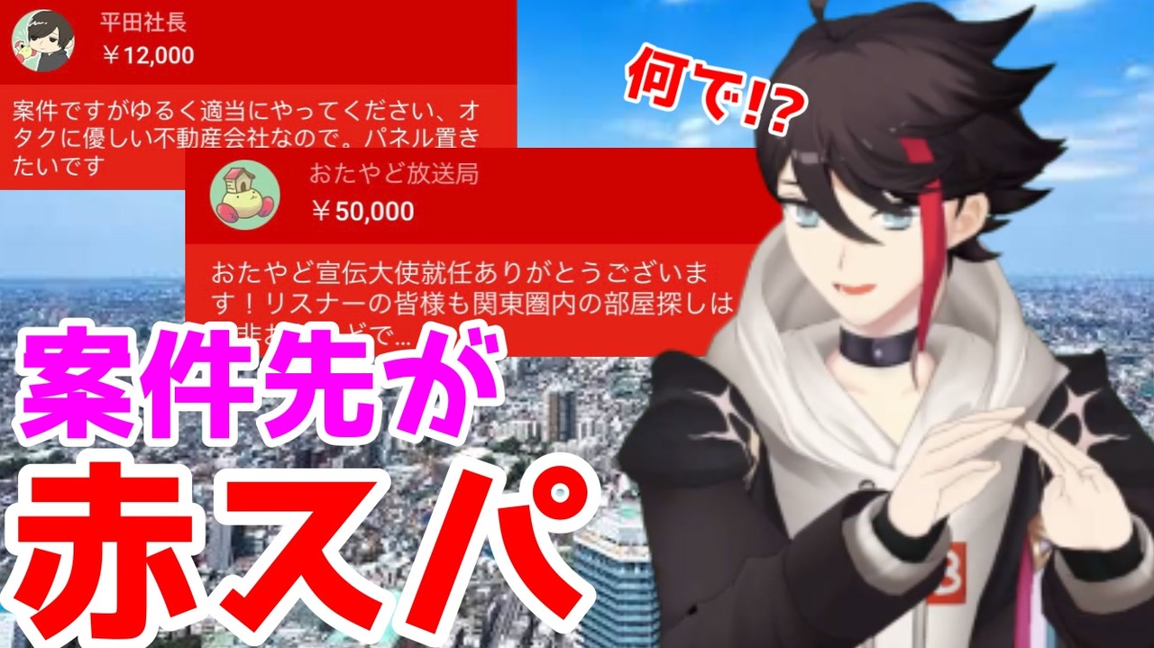 本編アーカイブ↓<br><a href="https://youtu.be/PboALyxak7M" target="_blank" rel="noopener nofollow">https://youtu.be/PboALyxak7M</a><br><br>三枝明那<br><a href="https://youtube.com/channel/UCNW1Ex0r6HsWRD4LCtPwvoQ" target="_blank" rel="noopener nofollow">https://youtube.com/channel/UCNW1Ex0r6HsWRD4LCtPwvoQ</a><br><br>おたくのやどかり↓<br><a href="https://otayado.com/" target="_blank" rel="noopener nofollow">https://otayado.com/</a><br><br>取れ高くんが出てる配信↓<br><a href="https://youtu.be/95C5-yG7hBo" target="_blank" rel="noopener nofollow">https://youtu.be/95C5-yG7hBo</a><br><br>三枝明那、えっこれ普通の雑談枠じゃなくて案件配信なんですか!?配信からの字幕付き切り抜きです。<br>誤字などあればご指摘をば。<br>某、関西住みなので「おたくのやどかり」さんはご存知無かったのですが、この切り抜きでも分かる通りフレンドリーでノリの良い会社なんだろうなと思いました。そもそもこの配信の雰囲気がサムネからして案件じゃなさ過ぎるのですか三枝さん!?単なる雑談枠の延長線上みたいな感じでしたが。<br><br>自分語りで申し訳ないんですが、私が今住んでいる所は元々私が1人で住んでたところを部屋とか色々整理して3〜4人住めるようにした実質シェアハウス状態のお家です。楽しいです。<br>これとは別の引っ越しは一度あったのですが、私の敷地内に何かに怯えた主婦が突然入ってきてうずくまってたのを息子っぽい子が宥めてめちゃくちゃ謝りながら帰って行ったのを覚えています。そこは一年も経たずに引っ越しちゃったなぁ…。<br>ちなみに何か笑い話でも無いかなと思ったのでさっきの話は投稿フォームには入れませんでした。しっかりした息子くんは元気にしているだろうか。<br /><br><br><span style="font-size: 10px;">私のマイリスト→ <a href="https://www.nicovideo.jp/user/60201467/mylist" target="_blank" rel="noopener nofollow">https://www.nicovideo.jp/user/60201467/mylist</a><br>私のTwitter→ <a href="https://twitter.com/a1sy2of" target="_blank" rel="noopener nofollow">https://twitter.com/a1sy2of</a><br>YouTube→<a href="https://www.youtube.com/channel/UCDXZuseWr9okt-8A6_vi2Zg" target="_blank" rel="noopener nofollow">https://www.youtube.com/channel/UCDXZuseWr9okt-8A6_vi2Zg</a><br>ご質問→ <a href="https://marshmallow-qa.com/a1sy2of" target="_blank" rel="noopener nofollow">https://marshmallow-qa.com/a1sy2of</a> </span><br><br><span style="color: #ff0000; font-size: 10px;">※動画を無断で転載する事は過去の動画も含めて禁止にさせていただいております。<br>※悪質な行為が散見されたのでタグを埋めさせていただいております。ご理解の程よろしくお願いします。</span>