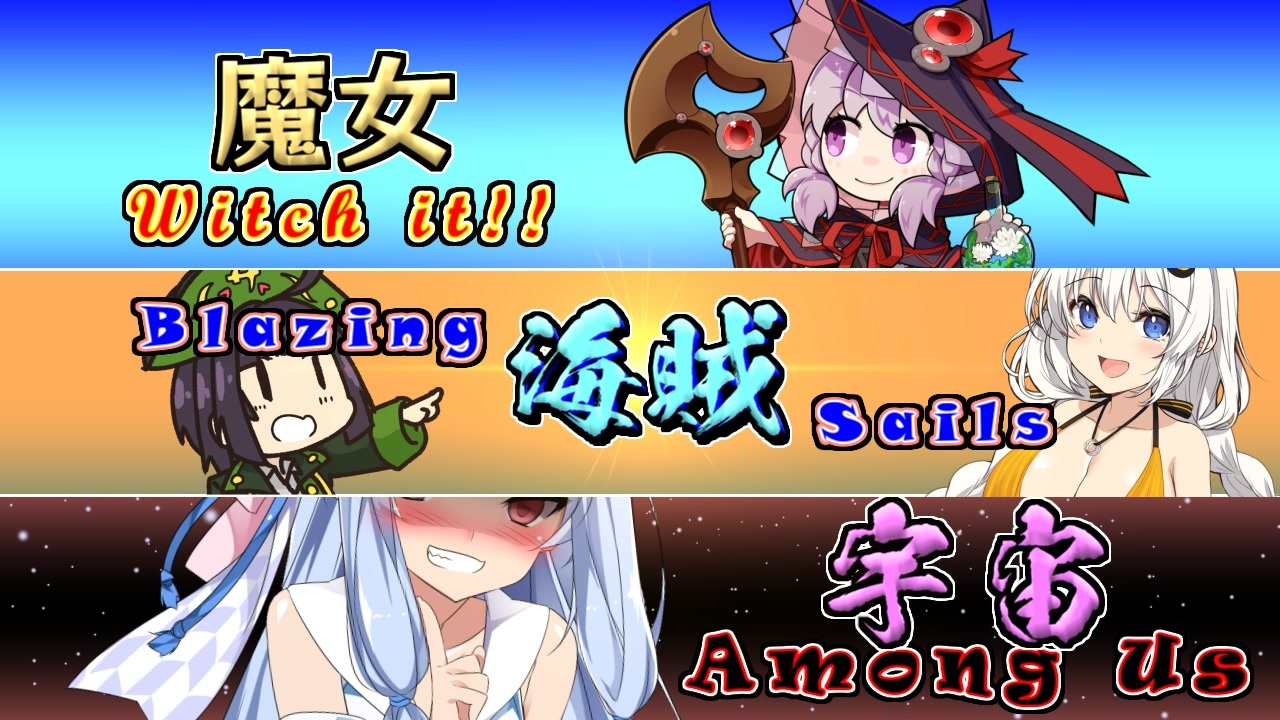 いいね❤ を押すと、ボイロ同士のイチャコラが見れます!<br><br>一部の簡単コメントが変化します。<br>「www」「ここすき」等<br>※スマホでは反映されません。<br><br>以下 共演者さま(順不同 敬称略<br><br><strong>【Witch it!】</strong><br>末法めいた国のアリス @AliceFromMappo <a href="https://www.nicovideo.jp/user/23160689" target="_blank" rel="noopener">user/23160689</a><br>ゆたろ @_yutaro_<br>アジシオ @azisio1616171 <a href="https://www.nicovideo.jp/user/2422200" target="_blank" rel="noopener">user/2422200</a><br>ななのへ @counterspell_4 <a href="https://www.nicovideo.jp/user/1097254" target="_blank" rel="noopener">user/1097254</a><br>シルシラ @sirusira <a href="https://www.nicovideo.jp/user/220860" target="_blank" rel="noopener">user/220860</a><br>ルナハート @lunaheart00 <a href="https://www.nicovideo.jp/user/2045914" target="_blank" rel="noopener">user/2045914</a><br>ごまみそずい @BioreRunba <a href="https://www.nicovideo.jp/user/487649" target="_blank" rel="noopener">user/487649</a><br>けむり @kemuri11861595 <a href="https://www.nicovideo.jp/user/96161400" target="_blank" rel="noopener">user/96161400</a><br>刻風咲夜 @yukari_ld <a href="https://www.nicovideo.jp/user/11064406" target="_blank" rel="noopener">user/11064406</a><br>ヒロアキ@ほのキチ @hiroakihonokiti<br> <br><strong>【Blazing Sails】</strong><br>バター犬 @bata728 <br>Zzz @Zzz_nya <a href="https://www.nicovideo.jp/user/13494159" target="_blank" rel="noopener">user/13494159</a><br>コカ・コーラ大臣 @CocaColaDaizin <a href="https://www.nicovideo.jp/user/12757983" target="_blank" rel="noopener">user/12757983</a><br>檸檬てぃー @lemon_tea_nico <a href="https://www.nicovideo.jp/user/48670983" target="_blank" rel="noopener">user/48670983</a><br>バヤリス @bayarisu21 <a href="https://www.nicovideo.jp/user/2271464" target="_blank" rel="noopener">user/2271464</a><br>ピスタチオ @pistachio_yukku <a href="https://www.nicovideo.jp/user/53716331" target="_blank" rel="noopener">user/53716331</a><br>一片 <a href="https://www.nicovideo.jp/user/194323" target="_blank" rel="noopener">user/194323</a><br>ランバート @Tower8000 <a href="https://www.nicovideo.jp/user/532326" target="_blank" rel="noopener">user/532326</a><br>クラウン提督 @kuraunteitoku <a href="https://www.nicovideo.jp/user/68469255" target="_blank" rel="noopener">user/68469255</a><br>nana @222211ke <a href="https://www.nicovideo.jp/user/11779951" target="_blank" rel="noopener">user/11779951</a><br>EST @establ <a href="https://www.nicovideo.jp/user/282985" target="_blank" rel="noopener">user/282985</a><br>Tera @Tera_doga <a href="https://www.nicovideo.jp/user/23273336" target="_blank" rel="noopener">user/23273336</a><br>みそごはん @satoumisu <br>カノ @hammergirl_kano <a href="https://www.nicovideo.jp/user/97512421" target="_blank" rel="noopener">user/97512421</a><br>ミルマ @jo12i2nnto1<br> <br><strong>【Among us】</strong><br>再見おじさん @yanagimohumohu <a href="https://www.nicovideo.jp/user/2776494" target="_blank" rel="noopener">user/2776494</a><br>末法めいた国のアリス<br>ルナハート<br>くろっく @9lxck <br>Ksasaki @ksasaki22 <a href="https://www.nicovideo.jp/user/5806430" target="_blank" rel="noopener">user/5806430</a><br>シュンカ @ShunkasyutoGame <br>ゆたろ<br>熊のチャンドラ @Iv_chandora <br><br /><span style="color: #0000ff; font-size: 18px;"><strong>【最新の動画 2022/11/22】</strong></span><span style="color: #9900ff; font-size: 24px;"><strong><a href="https://www.nicovideo.jp/watch/sm41405105" class="watch">sm41405105</a></strong></span><br><span style="color: #ff9900; font-size: 18px;"><strong>東北イタコさんになれる声変換ソフト「Seiren Voice」で、有名コピペを読んでみました!</strong></span><br><br><br>【他の動画はこちら!】<br>ずんだもんが 手打ちのお蕎麦をつくるのだ!【<a href="https://www.nicovideo.jp/watch/sm39842112" class="watch">sm39842112</a>】<br>風来人コスの美少女 あかりちゃんのちょっとムフフなシレン5実況【<a href="https://www.nicovideo.jp/watch/sm37989171" class="watch">sm37989171</a>】<br>魔物娘なボイスロイドと、水奈瀬コウのローグライク実況 【<a href="https://www.nicovideo.jp/watch/sm37769092" class="watch">sm37769092</a>】<br>他のボイロ投稿者様と一緒に遊んだ記録 【<a href="https://www.nicovideo.jp/watch/sm38287059" class="watch">sm38287059</a>】<br>イタコ姉さまが おちんぎんを入れられちゃう動画【<a href="https://www.nicovideo.jp/watch/sm37280920" class="watch">sm37280920</a>】<br>きりたんのEXボイスに ひたすら煽られる動画【<a href="https://www.nicovideo.jp/watch/sm34382406" class="watch">sm34382406</a>】<br>ゆかりさんが サキュバス琴葉姉妹に負けちゃう動画【<a href="https://www.nicovideo.jp/watch/sm33404390" class="watch">sm33404390</a>】<br><br><span style="color: #ff0000;"><strong><u>クリエイターサポート制度実装!</u></strong></span><br>投稿者に<span style="color: #ff9900;"><strong><u>一杯のコーヒーのご支援</u></strong></span>、よろしくお願いします!<br><a href="https://creator-support.nicovideo.jp/registration/8387576" target="_blank" rel="noopener nofollow">https://creator-support.nicovideo.jp/registration/8387576</a><br>