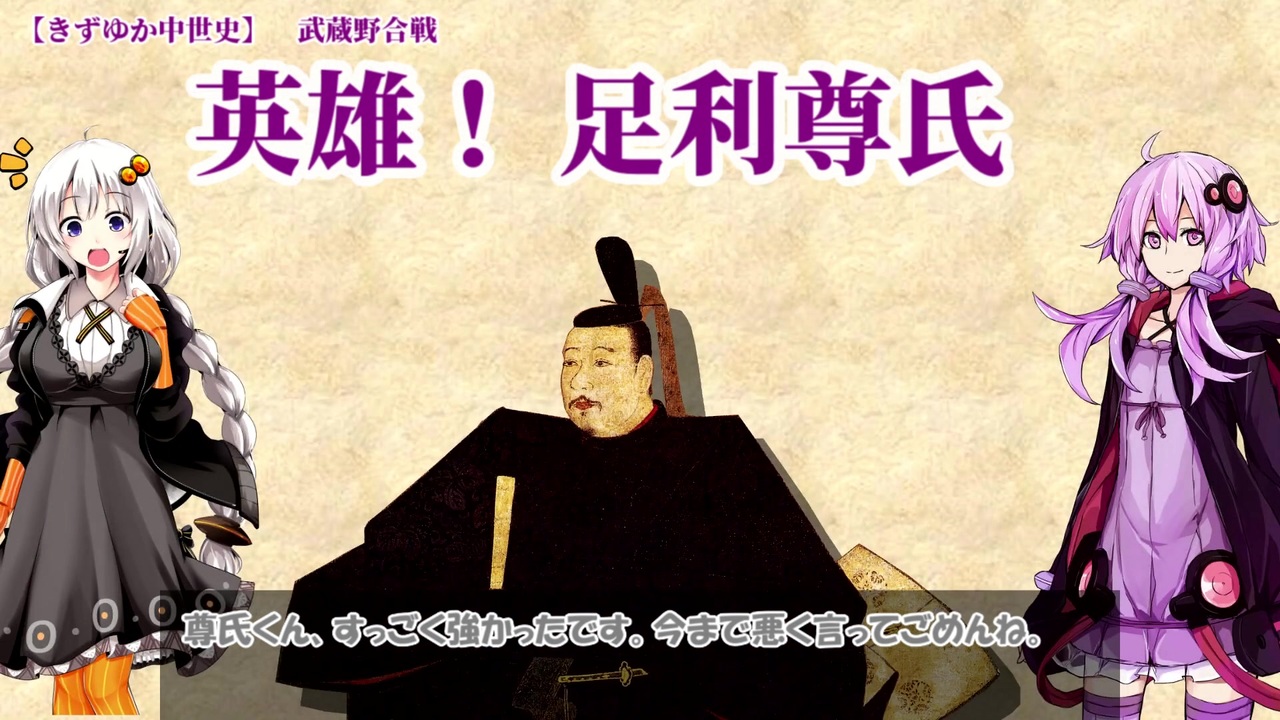 八十八(やそや)です。<br>もし足利尊氏がこの合戦に負けて討死でもしていたなら、後世に英雄と呼ばれることはなかったでしょう。竹之下や多々良ヶ浜、湊川合戦なども足利直義や高師直の功績になっていた可能性すらあります。足利尊氏の人生にとってそれほどまでに重大な意味を持つ戦い。武蔵野合戦について解説します。<br>なお、このシリーズは斯波高経の生涯(以下略)<br><br>【きずゆか中世史:裏足利家の興亡】<br>観応の擾乱① 初めての御所巻 <a href="https://www.nicovideo.jp/watch/sm37976740" class="watch">sm37976740</a><br>観応の擾乱② ほんとうは悪くない? 高師直 <a href="https://www.nicovideo.jp/watch/sm38023882" class="watch">sm38023882</a><br>前:観応の擾乱③ 足利直義の最期 <a href="https://www.nicovideo.jp/watch/sm38023882" class="watch">sm38023882</a><br>次:佐々木導誉の北朝再興! <a href="https://www.nicovideo.jp/watch/sm38553281" class="watch">sm38553281</a><br><br>ツイッター:<a href="https://twitter.com/yasoya_night" target="_blank" rel="noopener nofollow">https://twitter.com/yasoya_night</a><br><br><br>(参考資料・敬称略)<br>WikiPedia「北条時行」他の記事<br>観応の擾乱:亀田俊和<br>高一族と南北朝内乱:亀田俊和<br>足利尊氏と直義:峰岸純夫<br>足利直義:森茂暁<br>天皇家はなぜ続いたか:今谷明他<br>南朝研究の最前線:呉座勇一・日本史史料研究会<br>陰謀の日本中世史:呉座勇一<br>室町幕府 全将軍・管領列伝:平野明夫・日本史史料研究会<br>初期室町幕府研究の最前線:亀田俊和・日本史史料研究会<br>国別 守護・戦国大名辞典:西ヶ谷恭弘<br>安城市史5 資料編 古代・中世:安城市史編集委員会<br>ピクトリアル足利尊氏 南北朝の騒乱:永原慶二総監修<br>歴史群像シリーズ⑩戦乱南北朝:学研歴史群像シリーズ編集部<br>太平記の時代:新田一郎<br>太平記の世界 変革の時代を読む:永積安明・上横手政敬・桜井好朗<br>逃げ上手の若君:松井優征<br>注文の多い料理店:宮沢賢治<br><br>(補記)<br>動画中の皇統図、便宜上崇光天皇の下に直仁親王を置いていますが、正確には光厳天皇の猶子であり、崇光天皇の義理の弟にあたります。この辺りきちんと解説できてなくて申し訳ありません。事情は結構複雑です。<br>元弘の乱時に近江に逃亡した五辻宮を後醍醐天皇の第五皇子と言ってましたが、亀山天皇の第五皇子の間違いでした。訂正します。<br><br>詳細は以下参照<br><a href="https://ch.nicovideo.jp/article/ar2001873" target="_blank" rel="noopener">ar2001873</a>#-