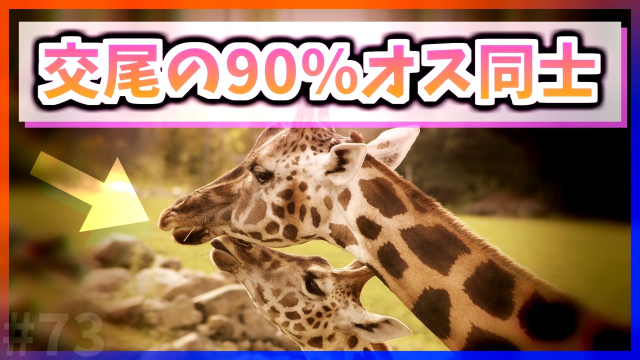今日の豆知識は「キリンの交尾の90%はオス同士」です。<br>同性愛はほとんどの動物に存在しますが、キリンは、なんと9割がオス同士で交尾をするんです。<br><br><span style="font-size: 16px;"><strong>「いいね!」に追加の豆知識書いてます。</strong></span><br><br>今日の豆知識シリーズでは、毎日、様々なジャンルの豆知識を紹介していきます。<br>このシリーズは音声のみで、ラジオ感覚で聞くこともできます。<br>基本毎日投稿です!<br><br><br>コメントやいいね、マイリストなどしていただけるとモチベにつながるのでよければお願いします。<br><br>前【<a href="https://www.nicovideo.jp/watch/sm38299335" class="watch">sm38299335</a>】<br>次【m38311228】<br><br /><br><span style="font-size: 16px;"><strong>各シリーズPart1リンク</strong></span><br>【海外の気になるQ&A】<br><a href="https://www.nicovideo.jp/watch/sm42996236" class="watch">sm42996236</a><br>【今日の豆知識】<br><a href="https://www.nicovideo.jp/watch/sm38740531" class="watch">sm38740531</a><br>【テクノロジーの歴史】<br><a href="https://www.nicovideo.jp/watch/sm37218295" class="watch">sm37218295</a><br><br>▶ Youtube<br><a href="https://www.youtube.com/channel/UCgb_Wn-ZUdVM3MTLiVHhcXQ?sub_confirmation=1" target="_blank" rel="noopener nofollow">https://www.youtube.com/channel/UCgb_Wn-ZUdVM3MTLiVHhcXQ?sub_confirmation=1</a><br>▶ Twitter<br><a href="https://twitter.com/RayKemo" target="_blank" rel="noopener nofollow">https://twitter.com/RayKemo</a>
