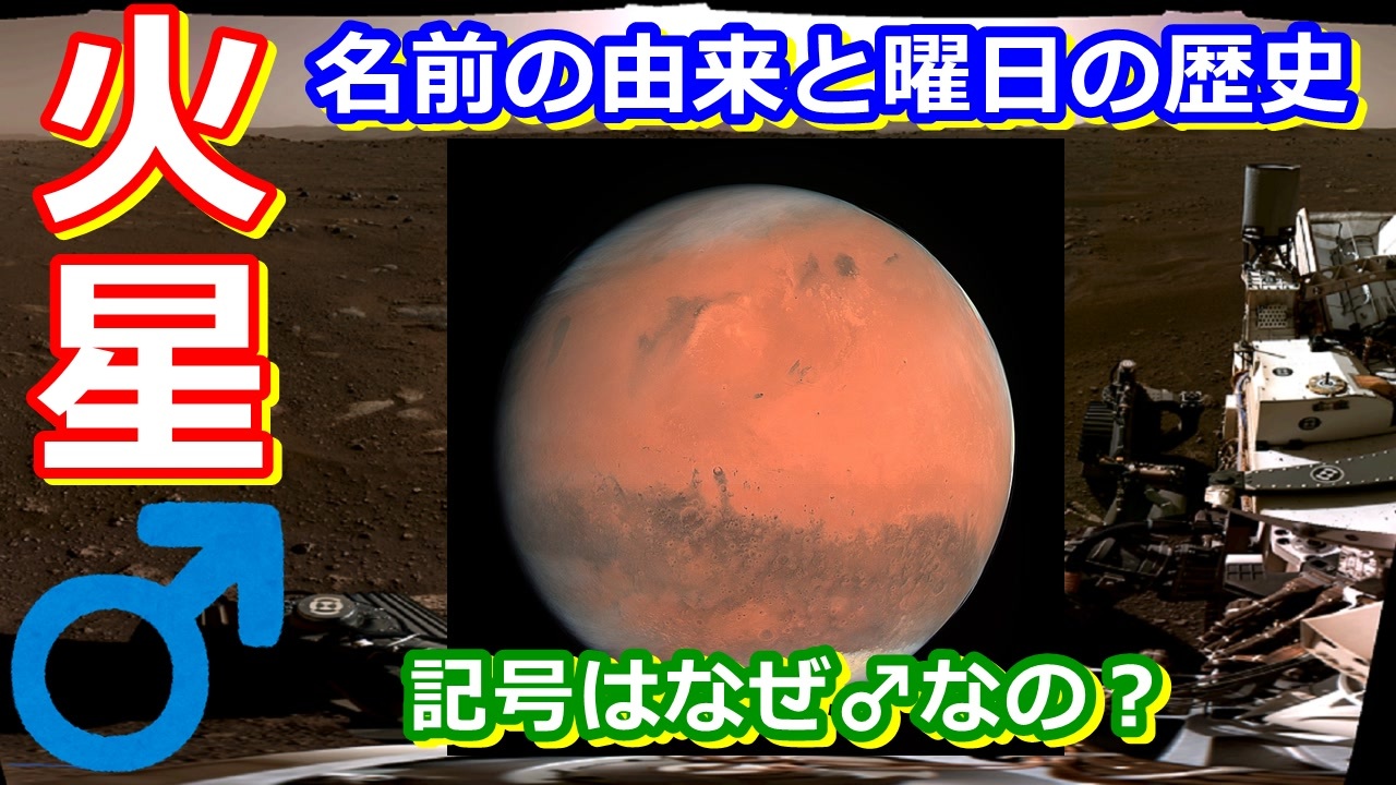 地球の隣にある火星<br>火星への探査が数多く行われていて、今年も火星への注目が集まっています<br>将来的には、火星への有人探査や有人滞在なんかもありますね<br>しかし、火星ってなぜ火星って言うんでしょうか?<br>赤く見えるから? 暑いから?<br>それには歴史があり、理由がありました<br>今回は、火星という名前がついた西洋と日本における歴史<br>火星の記号と金星の記号が、なぜ♂と♀なのかを解説します<br><br>宇宙って、正確に計測しているのは地球から月までの距離くらいで、<br>あとは「およそ」だったり、「約」の世界だったりします<br>例え探査機で計測したとしても、その時のその地点の数字であって、<br>違う日、違う地点で計測すれば数字が違ってきます<br>まあ、そのへんは地球も同じですね<br>宇宙のことを調べると、2倍違うのは当たり前で桁違いもよくある話ですね<br><br>いつも広告ありがとうございます<br>有料課金広告はもったいないので、他の優れた動画投稿者へお願いします<br><br>●マイリスト集はこちら<br><span style="color: #006699;"><a href="https://ch.nicovideo.jp/skysanpei/blomaga/ar1828398" target="_blank" rel="noopener nofollow">https://ch.nicovideo.jp/skysanpei/blomaga/ar1828398</a></span><br><span style="color: rgba(0, 0, 0, 0.87);">◆チャンネル登録はこちら</span><br><span style="color: #006699;"><a href="http://www.youtube.com/channel/UChOv-TZWg3X4MDjFUF8CfQg?sub_confirmation=1" target="_blank" rel="noopener nofollow">http://www.youtube.com/channel/UChOv-TZWg3X4MDjFUF8CfQg?sub_confirmation=1</a></span><br><span style="color: rgba(0, 0, 0, 0.87);">◆サブチャンネル(スカイ三平の雑多推進研究所)</span><br><span style="color: #006699;"><a href="http://www.youtube.com/channel/UCpQEOLtOpmXUwslvgi93yQw?sub_confirmation=1" target="_blank" rel="noopener nofollow">http://www.youtube.com/channel/UCpQEOLtOpmXUwslvgi93yQw?sub_confirmation=1</a></span><br><span style="color: rgba(0, 0, 0, 0.87);">◆twitterはこちら</span><br><span style="color: #006699;"><a href="https://twitter.com/skysanpei" target="_blank" rel="noopener nofollow">https://twitter.com/skysanpei</a></span>