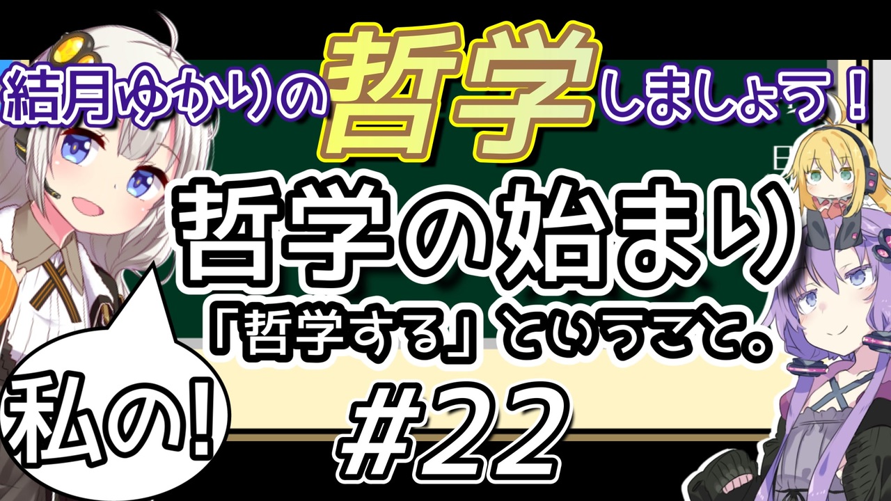 ”卒業おめでとう”<br><br>以降の動画投稿については不定期更新となります。<br>二年と半年もの間、お付き合い頂き、本当にありがとうございました。<br><br><a href="#" class="seekTime" data-seekTime="00:00" onclick="seekNicoPlayer('#00:00'); return false;">#00:00</a> 茶番<br><a href="#" class="seekTime" data-seekTime="00:40" onclick="seekNicoPlayer('#00:40'); return false;">#00:40</a> 本編<br><a href="#" class="seekTime" data-seekTime="16:42" onclick="seekNicoPlayer('#16:42'); return false;">#16:42</a> エンドロール<br><a href="#" class="seekTime" data-seekTime="18:10" onclick="seekNicoPlayer('#18:10'); return false;">#18:10</a> ???<br><br>前→ <a href="https://www.nicovideo.jp/watch/sm38153752" class="watch">sm38153752</a><br>次→ <a href="https://www.nicovideo.jp/watch/sm41015164" class="watch">sm41015164</a><br><br>最後のコメント返しはこちら→ <a href="https://www.nicovideo.jp/watch/sm38291265" class="watch">sm38291265</a><br /><strong>Youtube はじめました<br><a href="https://www.youtube.com/channel/UCseCeyYQq6epyNzf1hbm-WQ" target="_blank" rel="noopener nofollow">https://www.youtube.com/channel/UCseCeyYQq6epyNzf1hbm-WQ</a></strong><br><br><strong>【New】</strong><br>「【字幕付き】琴葉姉妹とほしめぐり【VOICEROID劇場】」<br>シリーズ→ <a href="https://www.nicovideo.jp/series/444552" target="_blank" rel="noopener">series/444552</a><br>Part1 → <a href="https://www.nicovideo.jp/watch/sm43090506" class="watch">sm43090506</a><br><br>他シリーズ→ <a href="https://www.nicovideo.jp/series/16986" target="_blank" rel="noopener">series/16986</a><br>「結月ゆかりの哲学しましょう」<br>マイリスト→ <a href="https://www.nicovideo.jp/mylist/63463022" target="_blank" rel="noopener">mylist/63463022</a><br>シリーズ → <a href="https://www.nicovideo.jp/series/16986" target="_blank" rel="noopener">series/16986</a><br>Part1 → <a href="https://www.nicovideo.jp/watch/sm33920383" class="watch">sm33920383</a><br>1分でわかる → <a href="https://www.nicovideo.jp/watch/sm41261724" class="watch">sm41261724</a><br><br>「結月ゆかりの「もっと」哲学しましょう」<br>シリーズ → <a href="https://www.nicovideo.jp/series/351485" target="_blank" rel="noopener">series/351485</a><br>Part1 → <a href="https://www.nicovideo.jp/watch/sm41015164" class="watch">sm41015164</a><br>new1分でわかる → <a href="https://www.nicovideo.jp/watch/sm41195696" class="watch">sm41195696</a><br><br>「【VOICEROID劇場】このアメ玉が溶けるまで」<br>シリーズ → <a href="https://www.nicovideo.jp/series/397530" target="_blank" rel="noopener">series/397530</a><br><br>「【VOICEROID】アンリアルライフ 【アテレコ】」<br>→ <a href="https://www.nicovideo.jp/series/342881" target="_blank" rel="noopener">series/342881</a> <br><br>「【ChatGPTが書く】タカハシ教授の哲学講義【CeVIO劇場】」<br>→ <a href="https://www.nicovideo.jp/series/396449" target="_blank" rel="noopener">series/396449</a><br><br>「【VOICEROID劇場】シラノ・ド・ベルジュラック」<br>→ <a href="https://www.nicovideo.jp/series/518063" target="_blank" rel="noopener">series/518063</a><br>第一幕→ <a href="https://www.nicovideo.jp/watch/sm45011537" class="watch">sm45011537</a>