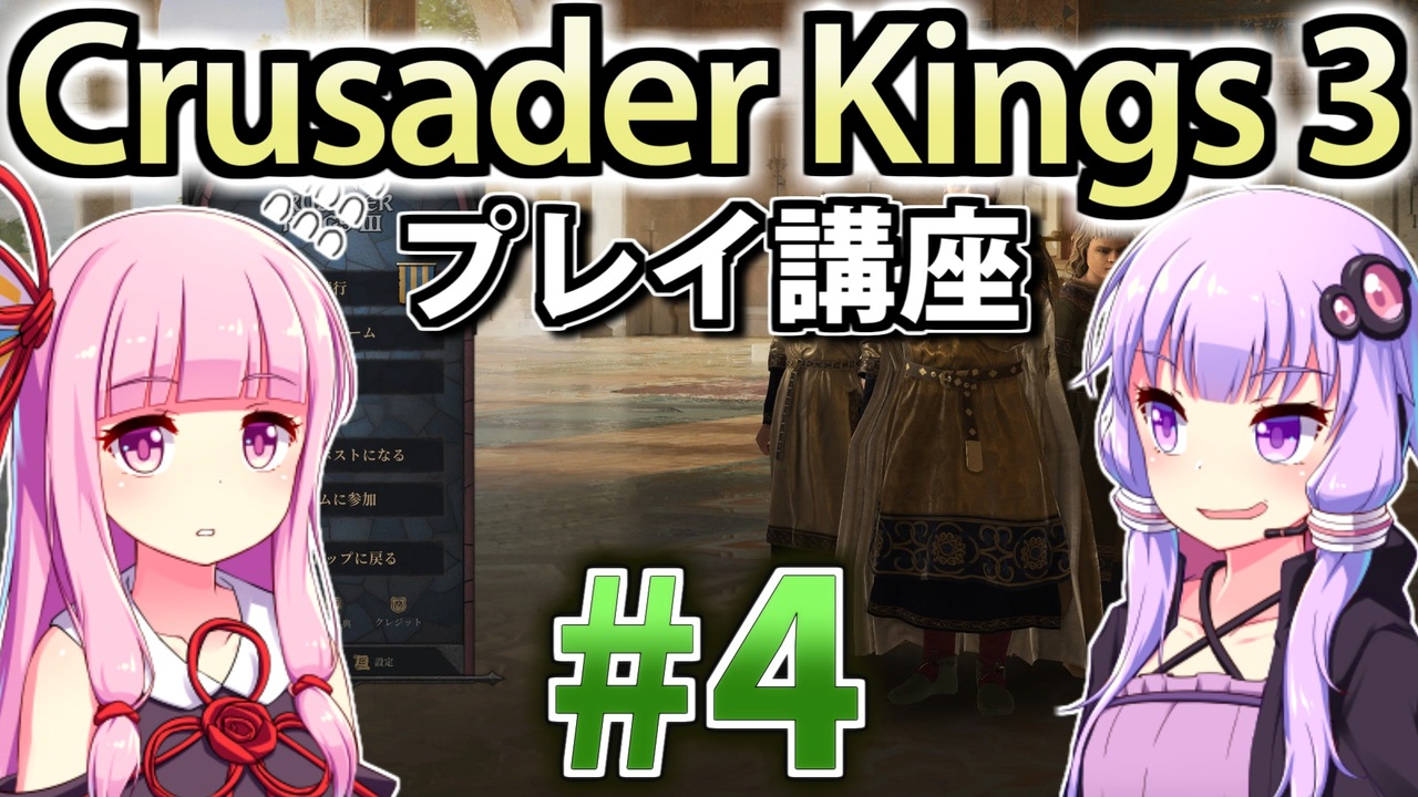 Crusader Kings III (CK3) の遊び方を初心者向けに解説していくプレイ動画。<br>第4回は相続問題。分割相続についてと人物の評価・ストレスなど。<br><br>プレイ環境 : CK3 Ver1.2.2<br>CK3日本語化MOD <a href="https://steamcommunity.com/sharedfiles/filedetails/?id=2217567218" target="_blank" rel="noopener nofollow">https://steamcommunity.com/sharedfiles/filedetails/?id=2217567218</a><br>CK3日本語フォント <a href="https://steamcommunity.com/sharedfiles/filedetails/?id=2222286050" target="_blank" rel="noopener nofollow">https://steamcommunity.com/sharedfiles/filedetails/?id=2222286050</a><br><br>前 : (<a href="https://www.nicovideo.jp/watch/sm38266540" class="watch">sm38266540</a>) <-> 次 : (<a href="https://www.nicovideo.jp/watch/sm38375834" class="watch">sm38375834</a>)<br>このシリーズのまとめ: <a href="https://www.nicovideo.jp/series/191974" target="_blank" rel="noopener">series/191974</a>